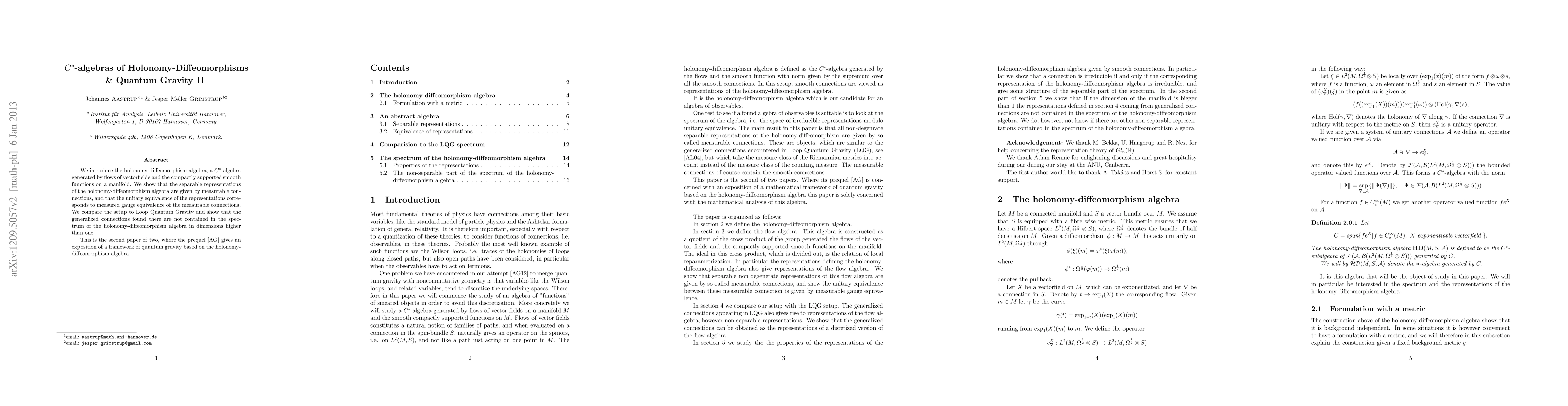 We introduce the holonomy-diffeomorphism algebra, a C*-algebra generated by flows of vectorfields and the compactly supported smooth functions on a manifold. We show that the separable representations of the holonomy-diffeomorphism algebra are given by measurable connections, and that the unitary equivalence of the representations corresponds to measured gauge equivalence of the measurable connections. We compare the setup to Loop Quantum Gravity and show that the generalized connections found there are not contained in the spectrum of the holonomy-diffeomorphism algebra in dimensions higher than one. This is the second paper of two, where the prequel gives an exposition of a framework of quantum gravity based on the holonomy-diffeomorphism algebra.