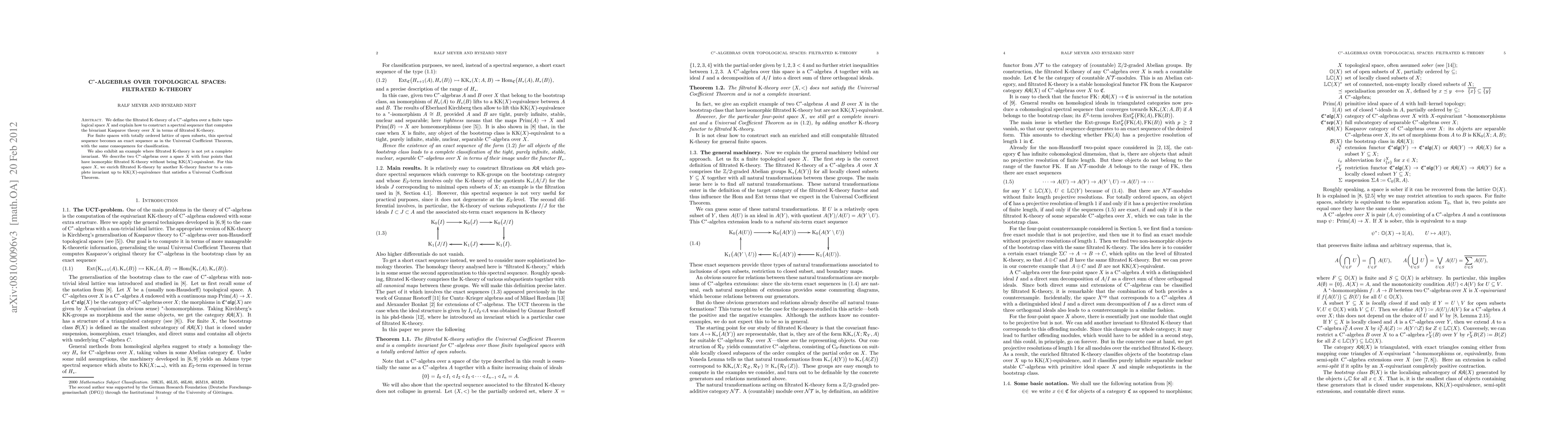 We define the filtrated K-theory of a C*-algebra over a finite topological space X and explain how to construct a spectral sequence that computes the bivariant Kasparov theory over X in terms of filtrated K-theory. For finite spaces with totally ordered lattice of open subsets, this spectral sequence becomes an exact sequence as in the Universal Coefficient Theorem, with the same consequences for classification. We also exhibit an example where filtrated K-theory is not yet a complete invariant. We describe a space with four points and two C*-algebras over this space in the bootstrap class that have isomorphic filtrated K-theory but are not KK(X)-equivalent. For this particular space, we enrich filtrated K-theory by another K-theory functor, so that there is again a Universal Coefficient Theorem. Thus the enriched filtrated K-theory is a complete invariant for purely infinite, stable C*-algebras with this particular spectrum and belonging to the appropriate bootstrap class.