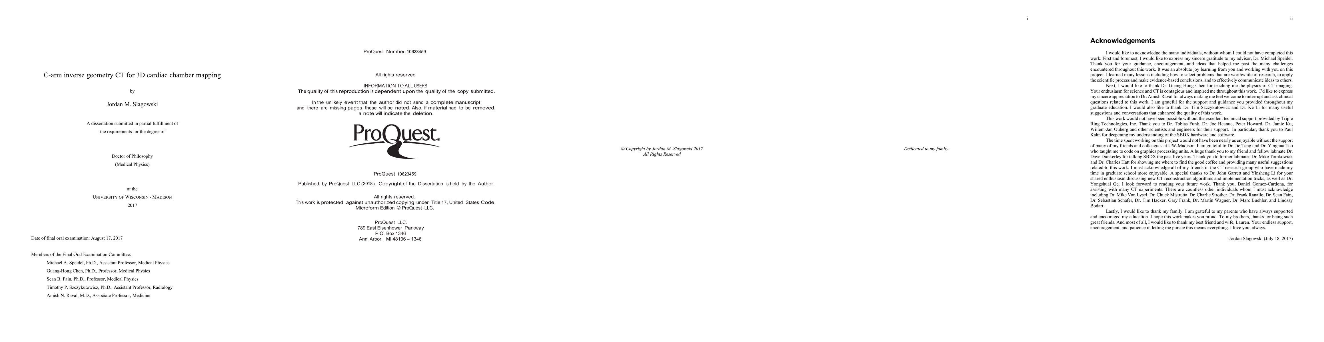 This paper develops a novel C-arm inverse geometry CT for real-time 3D cardiac chamber mapping using scanning-beam digital x-ray technology, addressing limitations of conventional 2D x-ray projections. The method includes image reconstruction algorithms, hardware implementation, and performance assessment in phantom and porcine models.