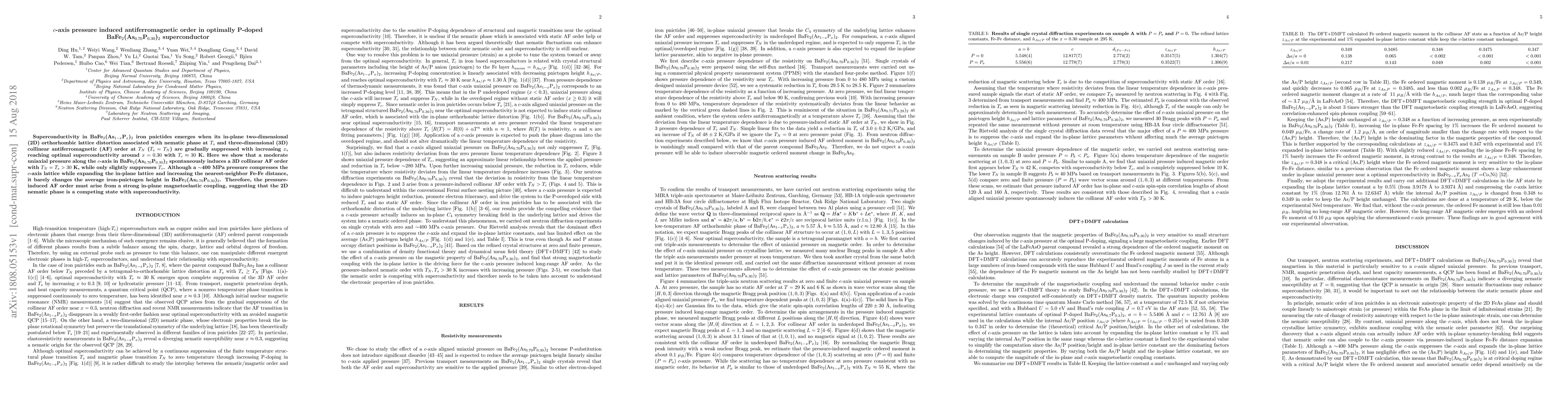 Superconductivity in BaFe2(As1-xPx)2 iron pnictides emerges when its in-plane two-dimensional (2D) orthorhombic lattice distortion associated with nematic phase at Ts and three-dimensional (3D) collinear antiferromagnetic (AF) order at TN (Ts = TN) are gradually suppressed with increasing x, reaching optimal superconductivity around x = 0.30 with Tc $\approx$ 30 K. Here we show that a moderate uniaxial pressure along the c-axis in BaFe2(As0.70P0.30)2 spontaneously induces a 3D collinear AF order with TN = Ts > 30 K, while only slightly suppresses Tc. Although a ~ 400 MPa pressure compresses the c-axis lattice while expanding the in-plane lattice and increasing the nearest-neighbor Fe-Fe distance, it barely changes the average iron-pnictogen height in BaFe2(As0.70P0.30)2. Therefore, the pressure- induced AF order must arise from a strong in-plane magnetoelastic coupling, suggesting that the 2D nematic phase is a competing state with superconductivity.