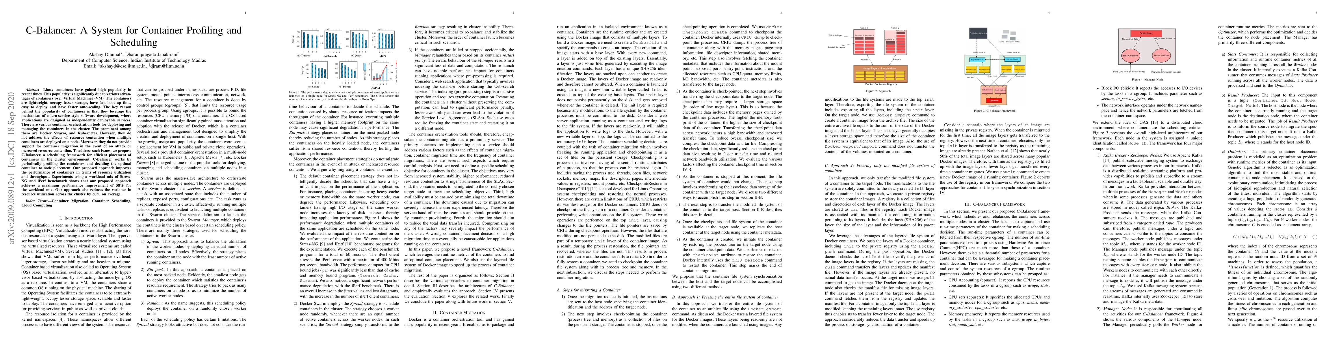 C-Balancer is a scheduling framework designed to optimize container placement in cluster environments, addressing resource contention and supporting container migration. It achieves up to 58% performance improvement and reduces resource utilization variance by 60% through periodic profiling and optimal scheduling.
