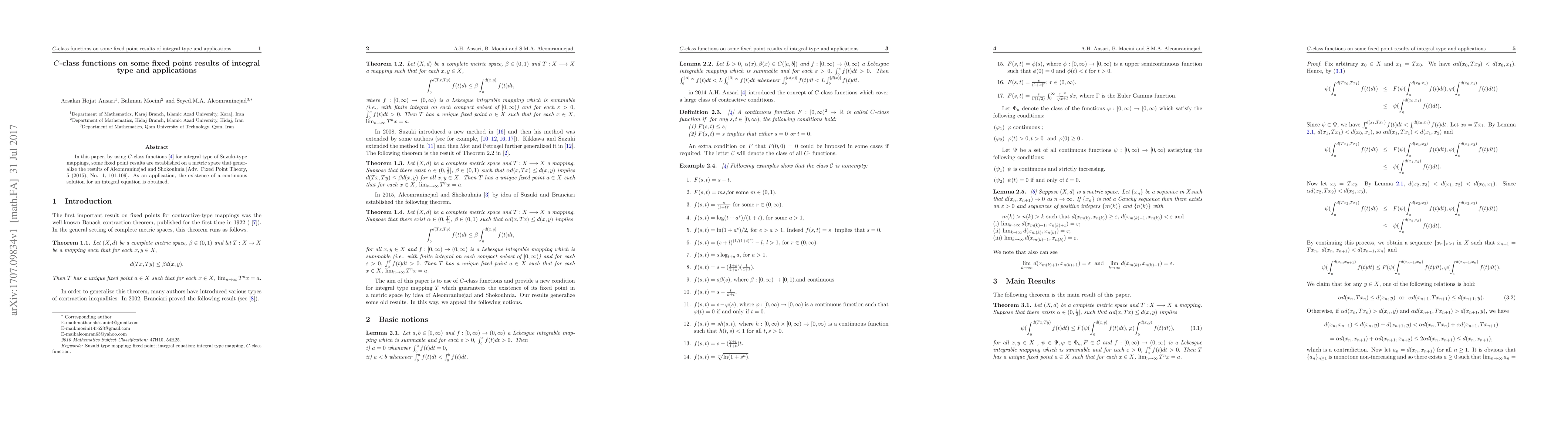 This paper establishes new fixed point results for Suzuki-type mappings using C-class functions on a metric space, generalizing previous work by Aleomraninejad and Shokouhnia. An application demonstrates the existence of a continuous solution for a specific integral equation.
