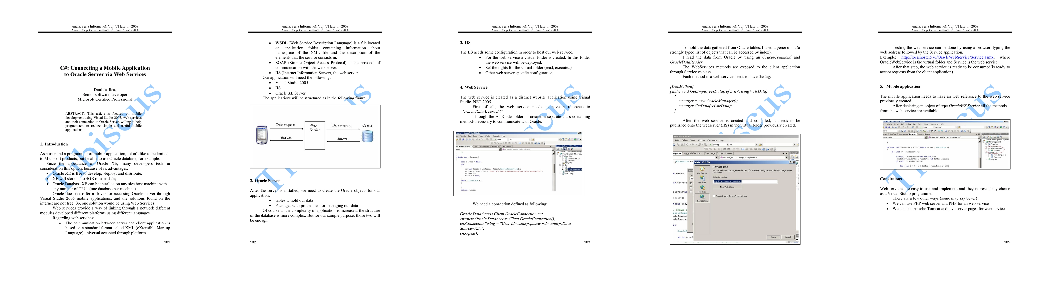 This article is focused on mobile development using Visual Studio 2005, web services and their connection to Oracle server, willing to help programmers to realize simple and useful mobile applications.