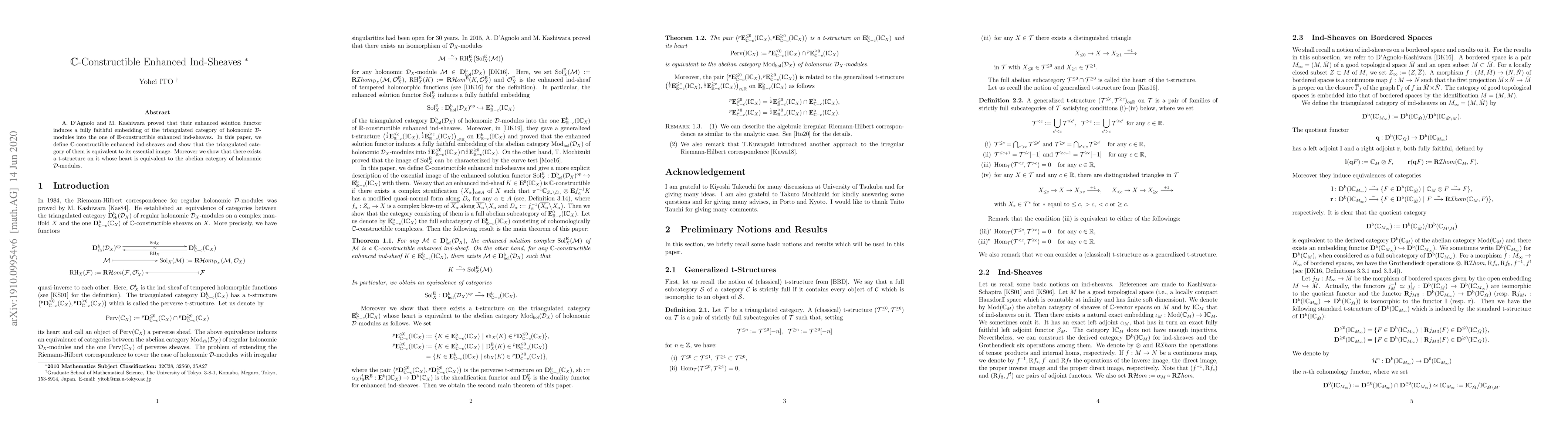 The introduction and detailed study of C-constructible enhanced ind-sheaves, along with proving their equivalence to holonomic D-modules, represents a significant technical advancement in the theory of D-modules and perverse sheaves.