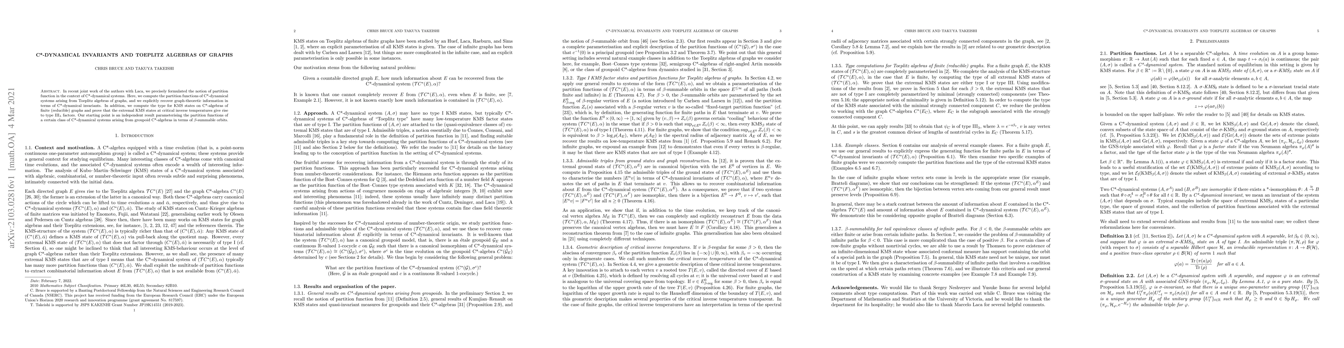 In recent joint work of the authors with Laca, we precisely formulated the notion of partition function in the context of C*-dynamical systems. Here, we compute the partition functions of C*-dynamical systems arising from Toeplitz algebras of graphs, and we explicitly recover graph-theoretic information in terms of C*-dynamical invariants. In addition, we compute the type for KMS states on C*-algebras of finite (reducible) graphs and prove that the extremal KMS states at critical inverse temperatures give rise to type III$_\lambda$ factors. Our starting point is an independent result parameterising the partition functions of a certain class of C*-dynamical systems arising from groupoid C*-algebras in terms of $\beta$-summable orbits.