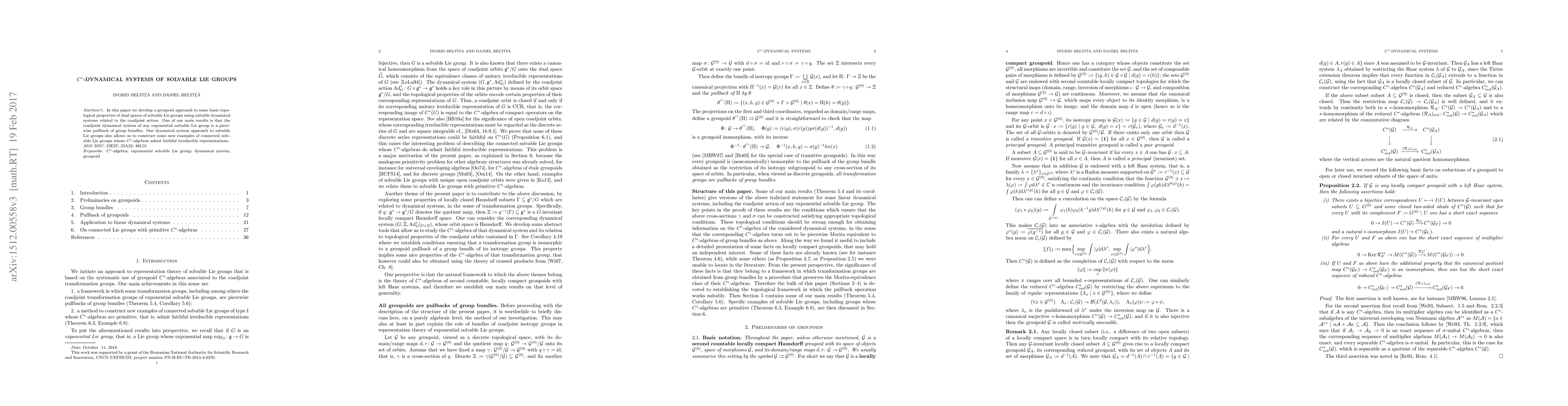 This paper introduces a groupoid method to investigate the topological properties of dual spaces of solvable Lie groups through dynamical systems tied to the coadjoint action, revealing that the coadjoint system of exponential solvable Lie groups is a piecewise pullback of group bundles. Additionally, it provides new examples of connected solvable Lie groups with $C^*$-algebras having faithful irreducible representations.
