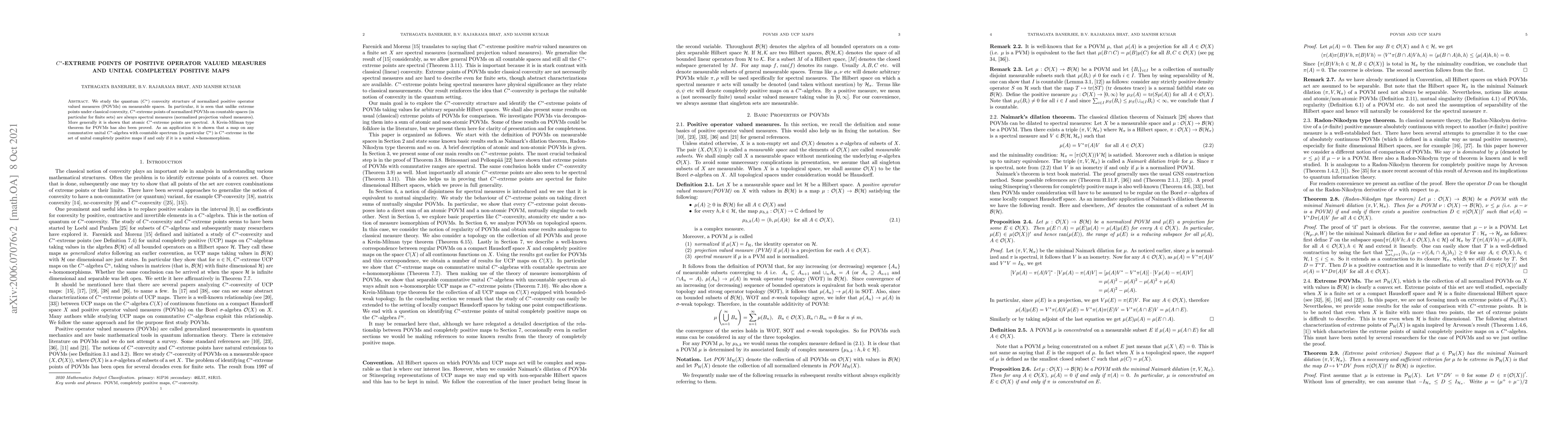 We study the quantum ($C^*$) convexity structure of normalized positive operator valued measures (POVMs) on measurable spaces. In particular, it is seen that unlike extreme points under classical convexity, $C^*$-extreme points of normalized POVMs on countable spaces (in particular for finite sets) are always spectral measures (normalized projection valued measures). More generally it is shown that atomic $C^*$-extreme points are spectral. A Krein-Milman type theorem for POVMs has also been proved. As an application it is shown that a map on any commutative unital $C^*$-algebra with countable spectrum (in particular ${\mathbb C}^n$) is $C^*$-extreme in the set of unital completely positive maps if and only if it is a unital $*$-homomorphism.