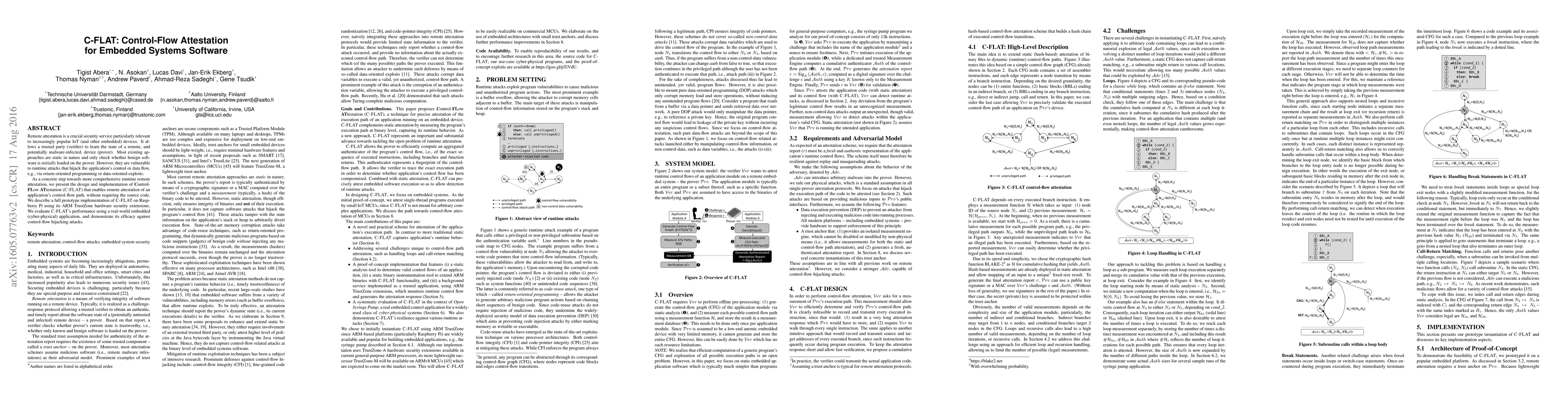 The paper introduces C-FLAT, a system for remote attestation of embedded systems' control-flow paths, addressing vulnerabilities in static approaches. The prototype implementation on Raspberry Pi with ARM TrustZone demonstrates its effectiveness against control-flow hijacking attacks.