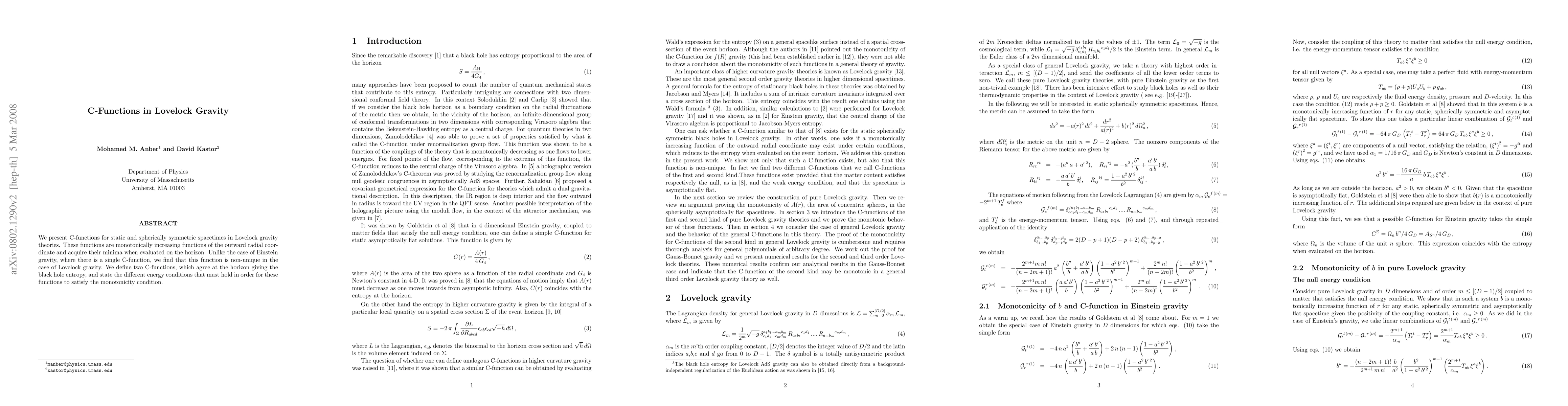 We present C-functions for static and spherically symmetric spacetimes in Lovelock gravity theories. These functions are monotonically increasing functions of the outward radial coordinate and acquire their minima when evaluated on the horizon. Unlike the case of Einstein gravity, where there is a single C-function, we find that this function is non-unique in the case of Lovelock gravity. We define two C-functions, which agree at the horizon giving the black hole entropy, and state the different energy conditions that must hold in order for these functions to satisfy the monotonicity condition.