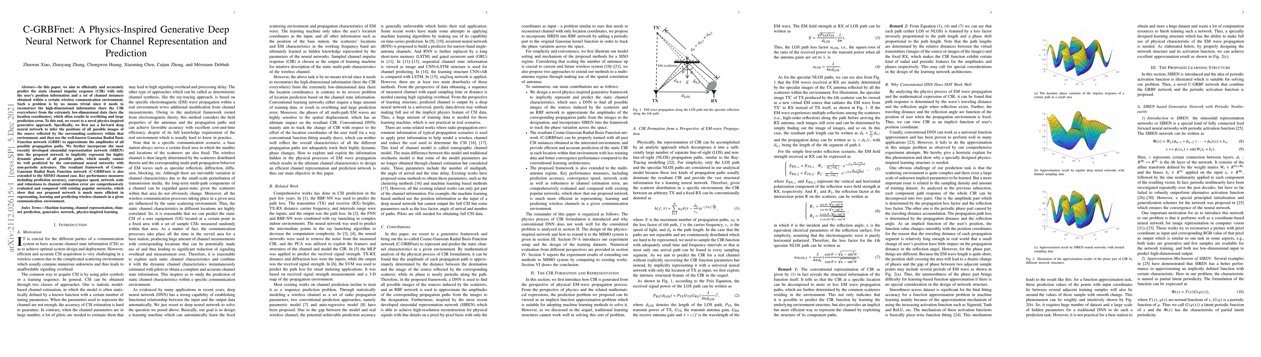 The paper introduces C-GRBFnet, a physics-inspired generative deep neural network that accurately predicts wireless channel impulse responses using user position and channel instances. It combines forward deep neural networks, Gaussian RBF, and SIREN for efficient representation and prediction, demonstrating superior performance over existing methods in terms of accuracy and efficiency.