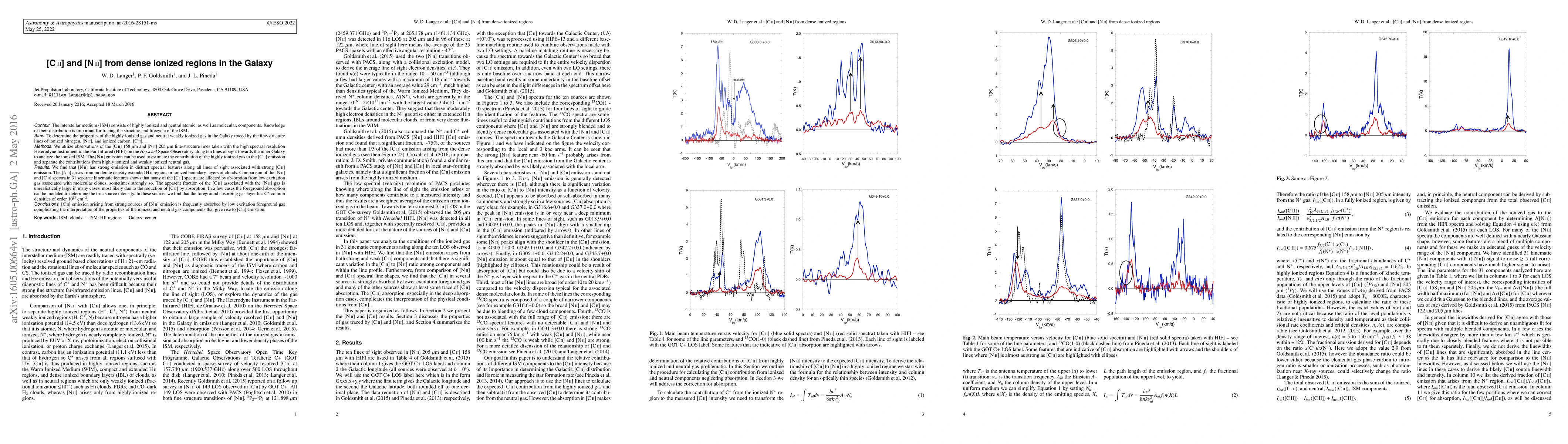 This study analyzes the fine-structure lines [C II] and [N II] in the Galaxy's interstellar medium, revealing significant absorption of [C II] by low excitation gas from molecular clouds. The [N II] emission indicates strong ionized gas regions, complicating the interpretation of [C II] due to absorption effects.