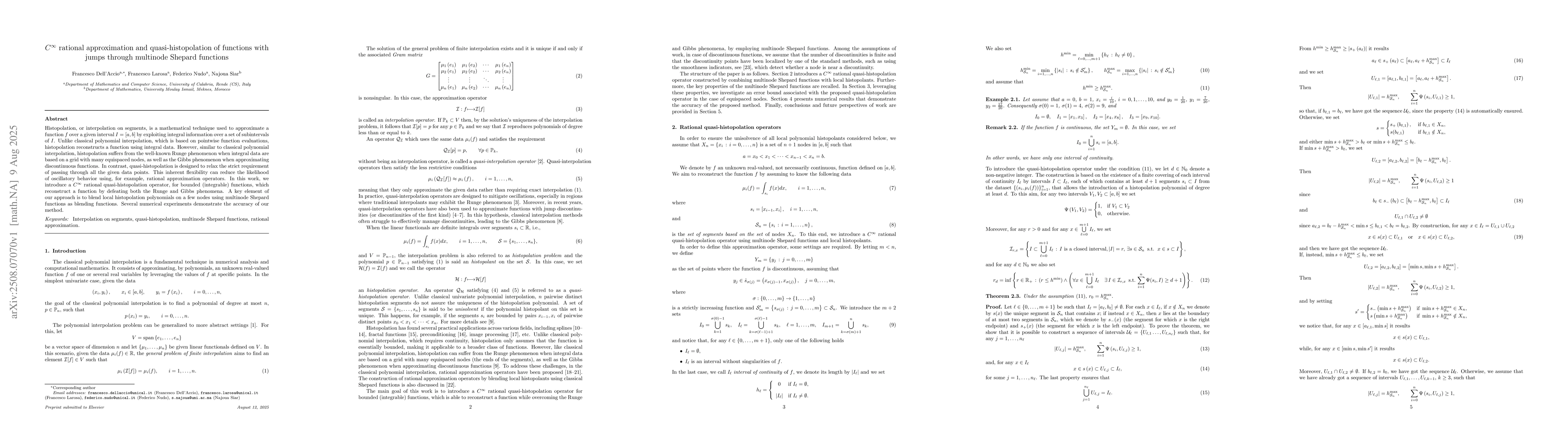 The paper's main technical contribution is the introduction of a $C^{\infty}$ rational quasi-histopolation operator that effectively approximates functions with jumps, blending local histopolation polynomials using multinode Shepard functions.