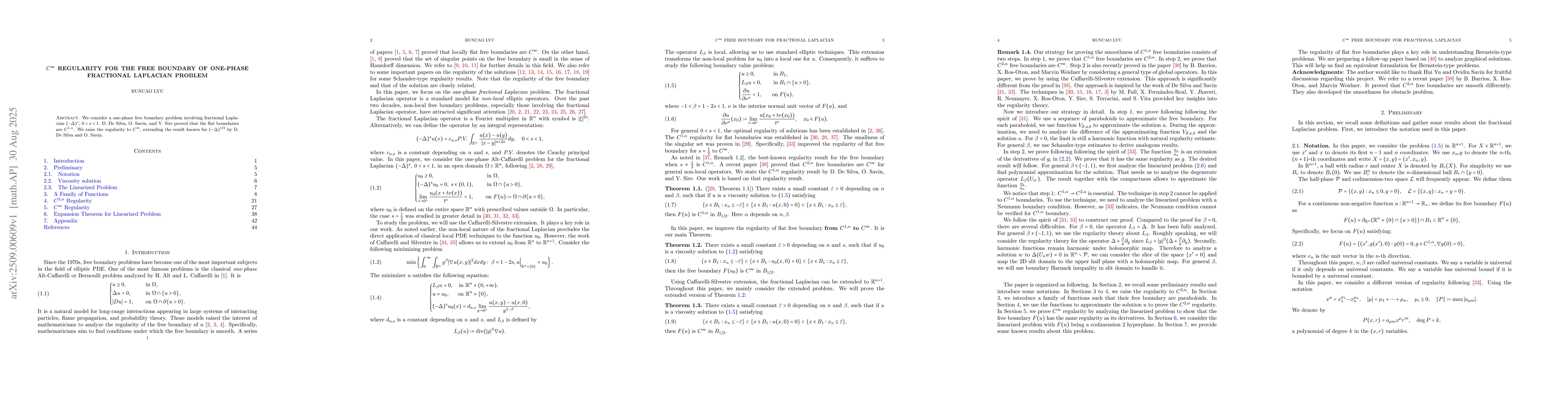 We consider a one-phase free boundary problem involving fractional Laplacian $(-\Delta)^s$, $0