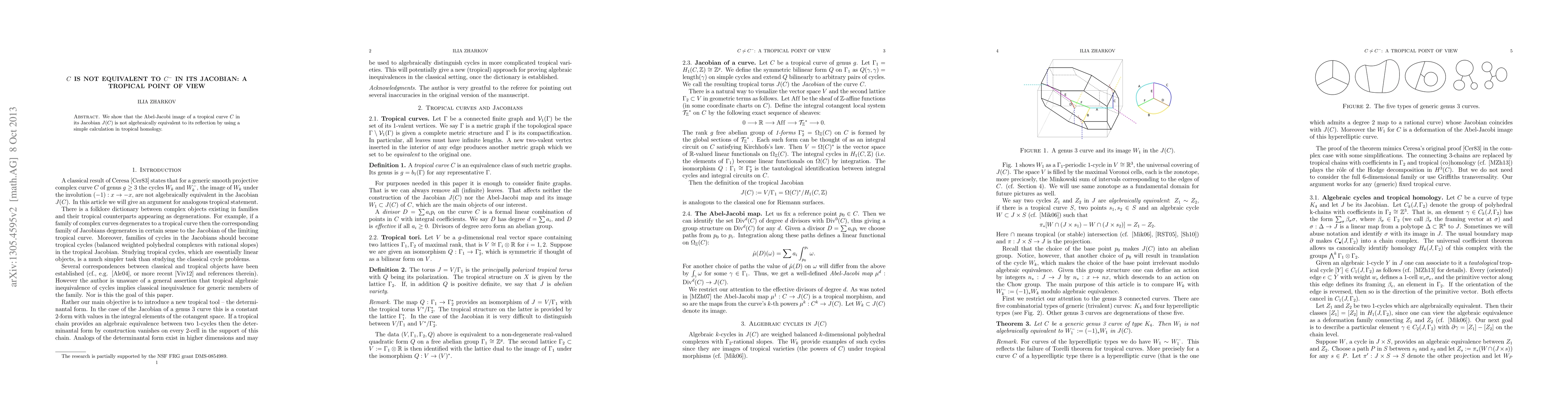 We show that the Abel-Jacobi image of a tropical curve $C$ in its Jacobian $J(C)$ is not algebraically equivalent to its reflection by using a simple calculation in tropical homology.