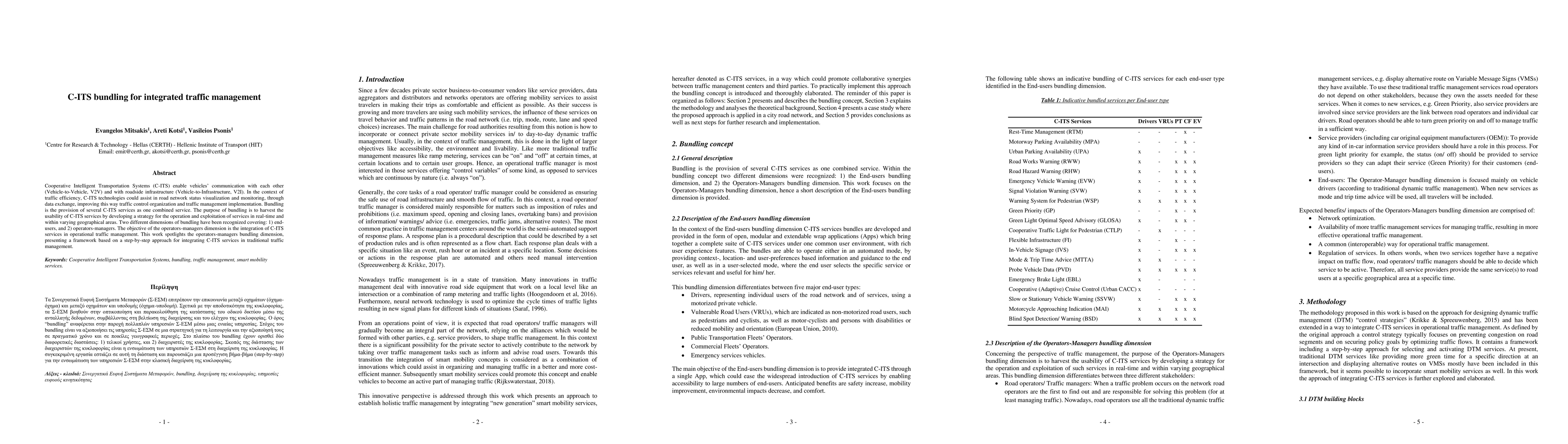This paper explores the bundling of Cooperative Intelligent Transportation Systems (C-ITS) services to enhance traffic management by integrating C-ITS technologies into traditional traffic management systems through a step-by-step framework. The study focuses on the operators-managers dimension of bundling to improve traffic control and monitoring.
