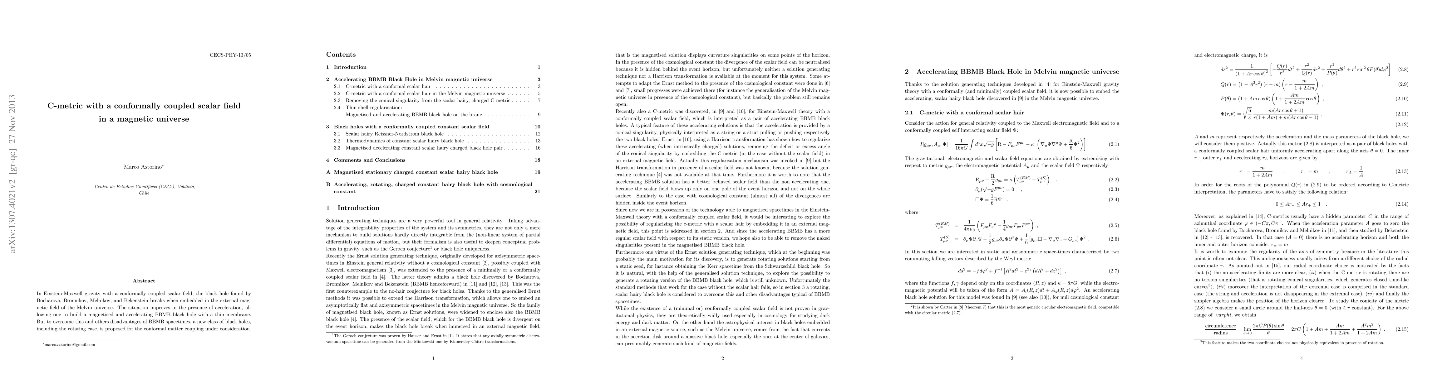 In Einstein-Maxwell gravity with a conformally coupled scalar field, the black hole found by Bocharova, Bronnikov, Melnikov, and Bekenstein breaks when embedded in the external magnetic field of the Melvin universe. The situation improves in presence of acceleration, allowing one to build magnetised and accelerating BBMB black hole with a thin membrane. But to overcome this and others disadvantages of BBMB spacetimes, a new class of black holes, including the rotating case, is proposed for the conformal matter coupling under consideration.