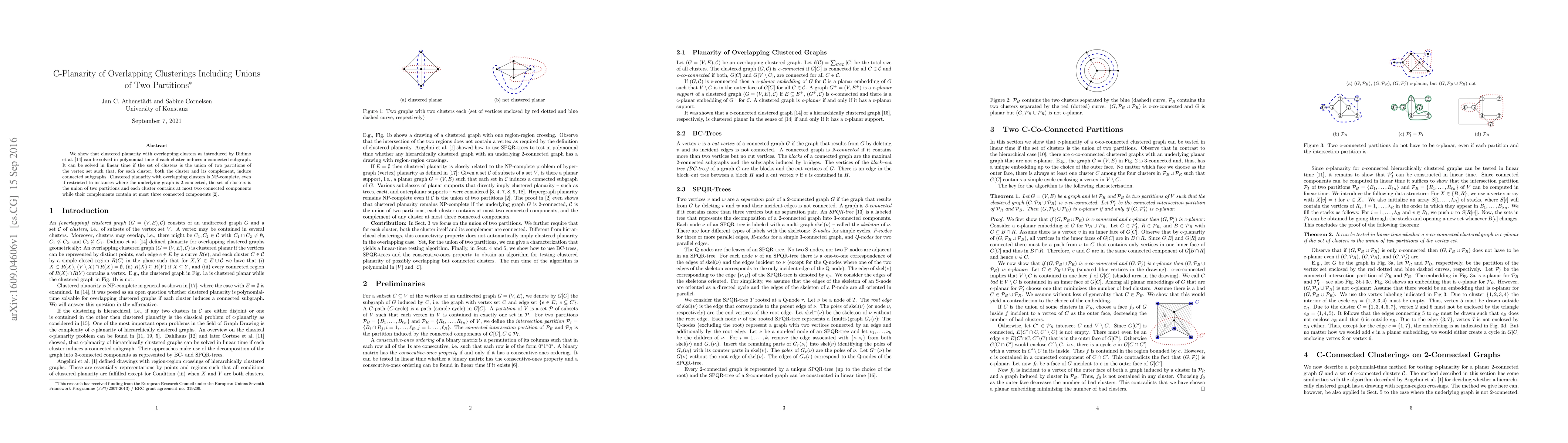 We show that clustered planarity with overlapping clusters as introduced by Didimo et al. can be solved in polynomial time if each cluster induces a connected subgraph. It can be solved in linear time if the set of clusters is the union of two partitions of the vertex set such that, for each cluster, both the cluster and its complement, induce connected subgraphs. Clustered planarity with overlapping clusters is NP-complete, even if restricted to instances where the underlying graph is 2-connected, the set of clusters is the union of two partitions and each cluster contains at most two connected components while their complements contain at most three connected components.