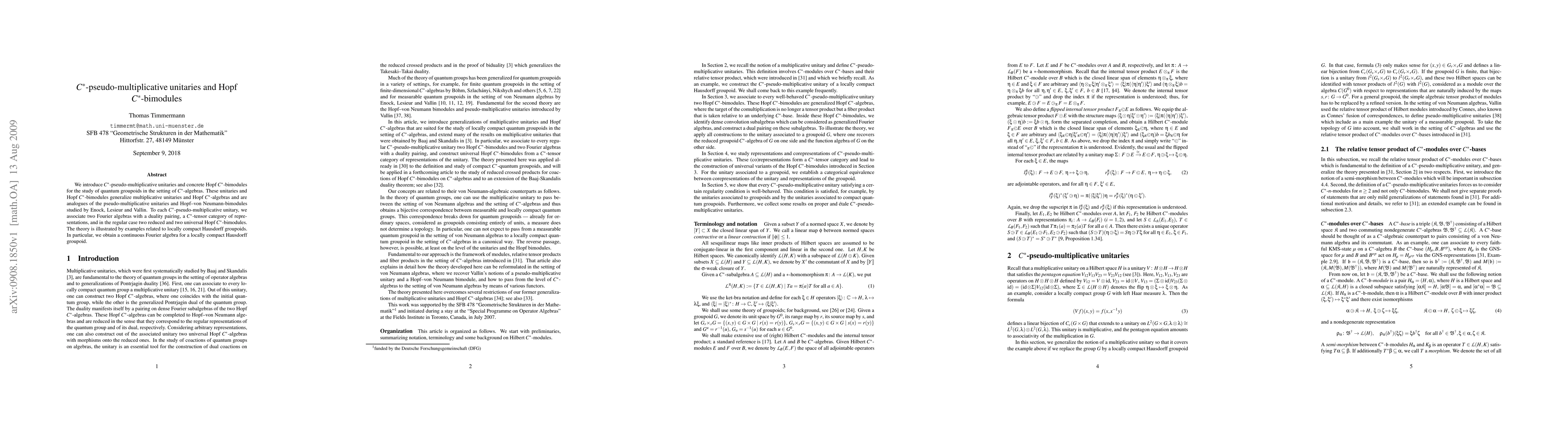 This paper introduces C*-pseudo-multiplicative unitaries and Hopf C*-bimodules, generalizing traditional concepts to study quantum groupoids within C*-algebras. The paper also establishes connections to Fourier algebras, representation theory, and applications to locally compact Hausdorff groupoids.