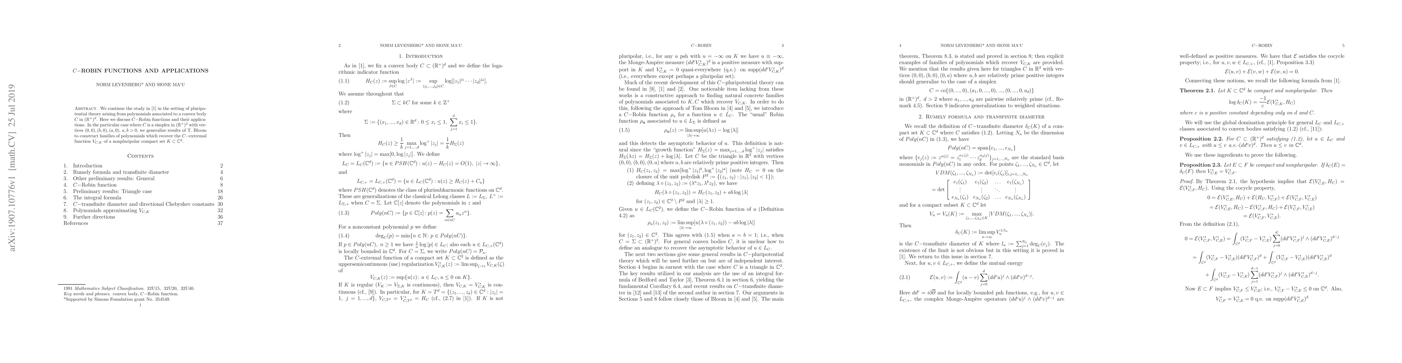 Researchers develop $C-$Robin functions to study polynomials associated with a convex body in higher dimensions, extending previous work on simpler cases like 2D simplices.