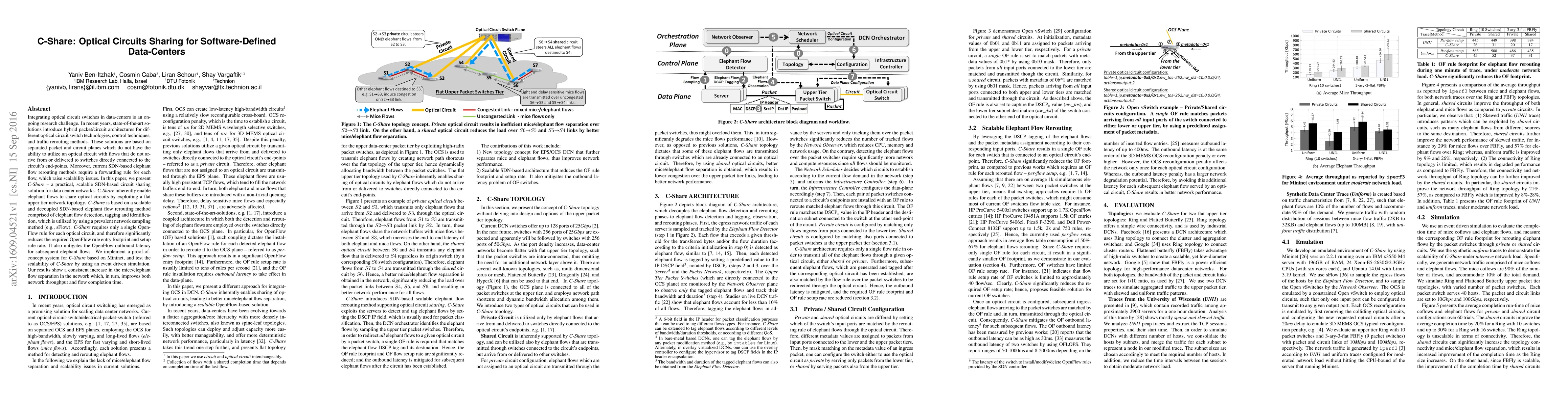 C-Share presents a novel SDN-based architecture that enables efficient sharing of optical circuits in data center networks, significantly reducing OpenFlow rule footprint and latency.