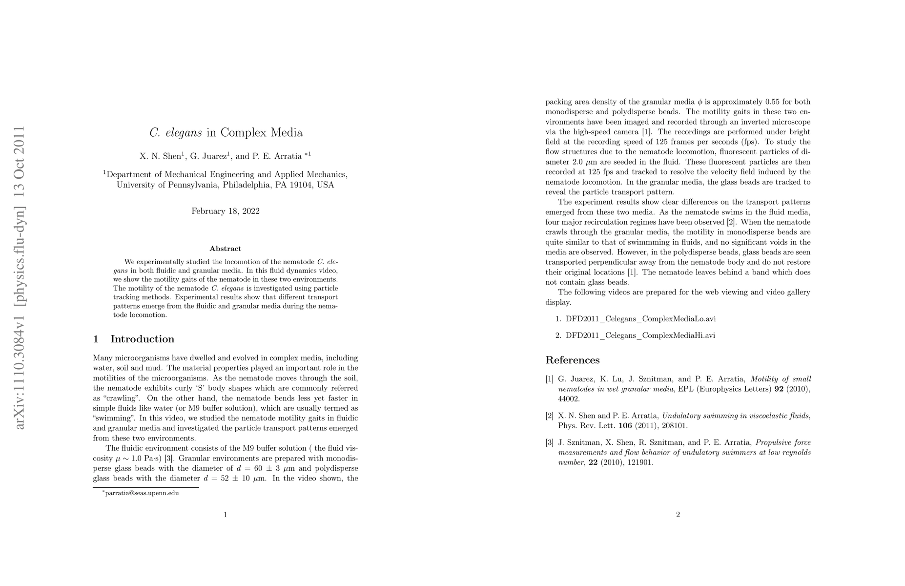 This study investigates the locomotion of C. elegans in fluidic and granular media, revealing distinct transport patterns using particle tracking methods. The results highlight how nematode motility differs significantly between these two environments.