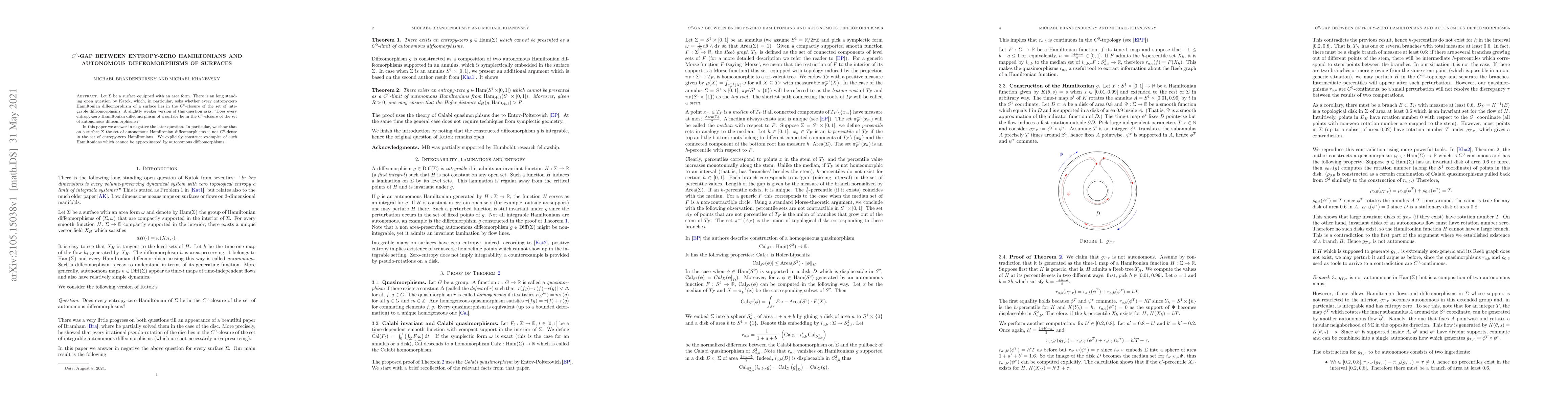 Let $\Sigma$ be a surface equipped with an area form. There is an long standing open question by Katok, which, in particular, asks whether every entropy-zero Hamiltonian diffeomorphism of a surface lies in the $C^0$-closure of the set of integrable diffeomorphisms. A slightly weaker version of this question asks: ``Does every entropy-zero Hamiltonian diffeomorphism of a surface lie in the $C^0$-closure of the set of autonomous diffeomorphisms?'' In this paper we answer in negative the later question. In particular, we show that on a surface $\Sigma$ the set of autonomous Hamiltonian diffeomorphisms is not $C^0$-dense in the set of entropy-zero Hamiltonians. We explicitly construct examples of such Hamiltonians which cannot be approximated by autonomous diffeomorphisms.