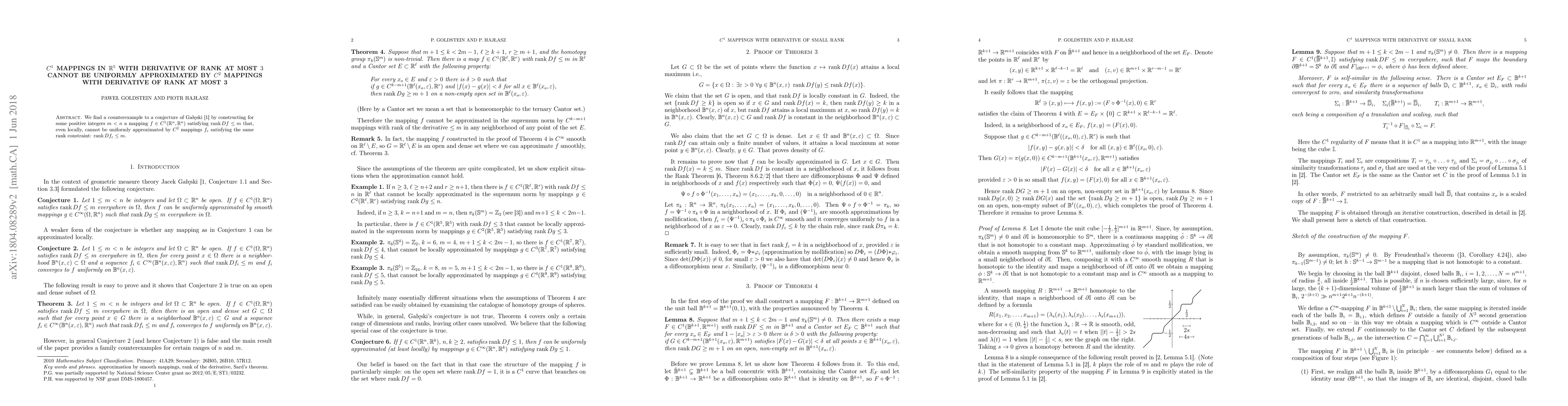 Summary: This paper refutes a conjecture by constructing a $C^1$ mapping in $\mathbb{R}^n$ with a derivative of rank at most $m$ that cannot be uniformly approximated by $C^2$ mappings with the same rank constraint, even locally. This finding highlights the limitations of approximating lower-order differentiable mappings with higher-order ones under specific rank conditions.
