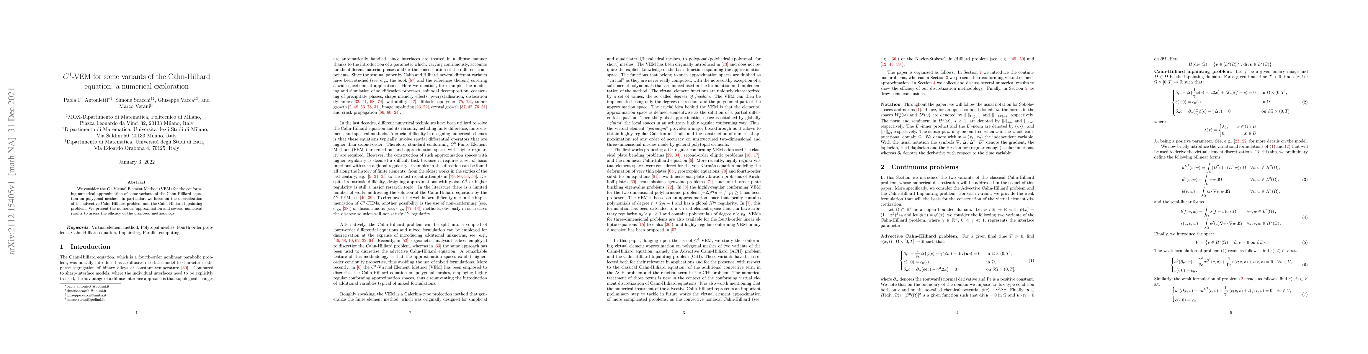 The research explores the $C^1$-Virtual Element Method (VEM) for conforming numerical approximation of variants of the Cahn-Hilliard equation on polygonal meshes, focusing on the advective Cahn-Hilliard problem and Cahn-Hilliard inpainting problem.