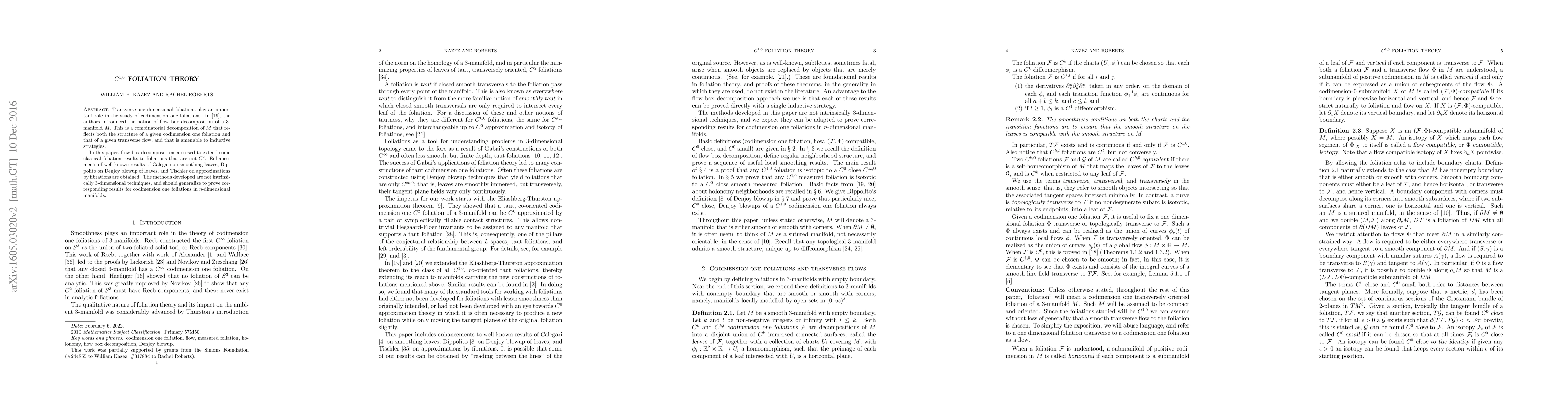 Researchers extend classical foliation results to non-C^2 codimension one foliations using flow box decompositions, which provide a structure that reflects both the foliation and a given transverse flow, with implications for n-dimensional manifolds.