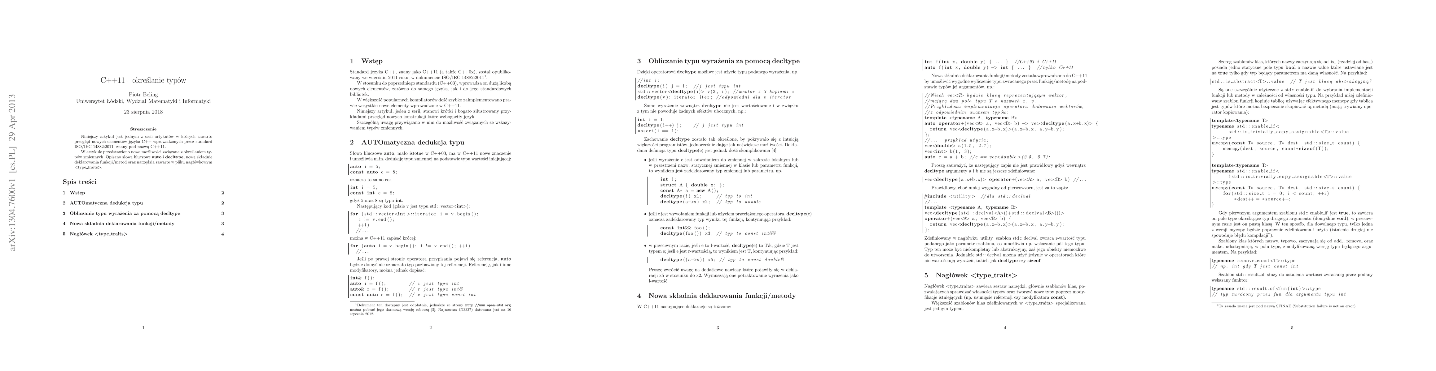 This paper reviews new C++11 features that simplify variable type expressions, including auto and decltype keywords, new function declaration syntax, and tools in the type_traits header.