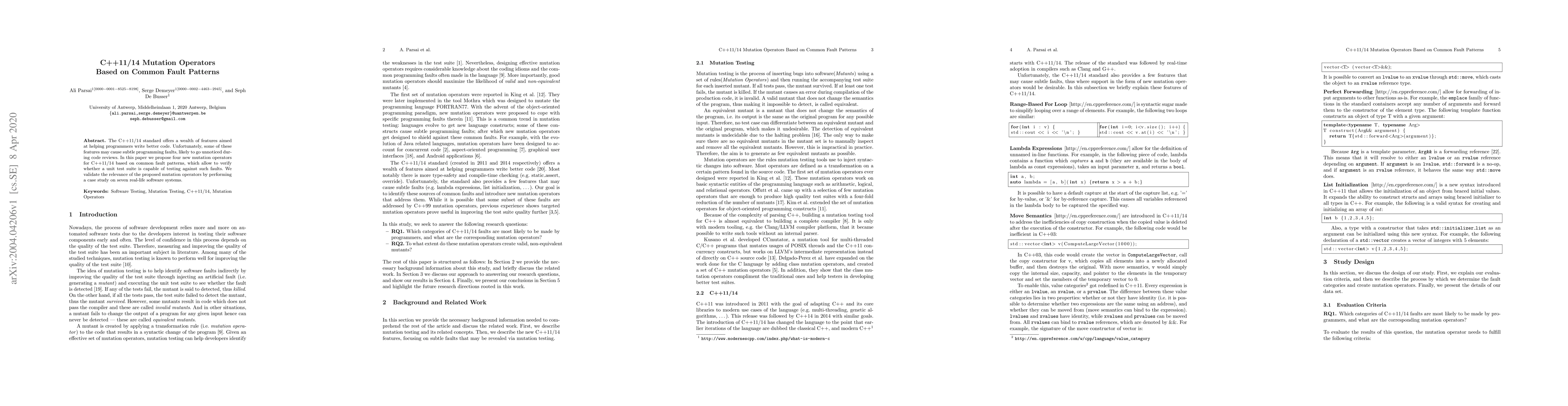 The C++11/14 standard offers a wealth of features aimed at helping programmers write better code. Unfortunately, some of these features may cause subtle programming faults, likely to go unnoticed during code reviews. In this paper we propose four new mutation operators for C++11/14 based on common fault patterns, which allow to verify whether a unit test suite is capable of testing against such faults. We validate the relevance of the proposed mutation operators by performing a case study on seven real-life software systems.