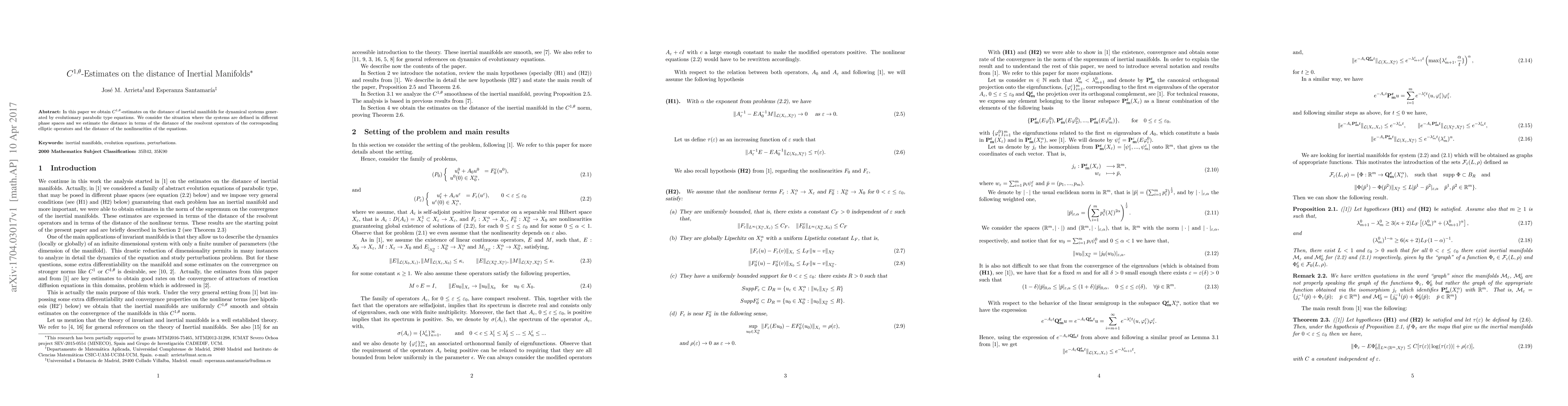 This paper establishes $C^{1, heta}$-estimates on the distance of inertial manifolds for parabolic type equations, relating it to resolvent operators and nonlinearities.