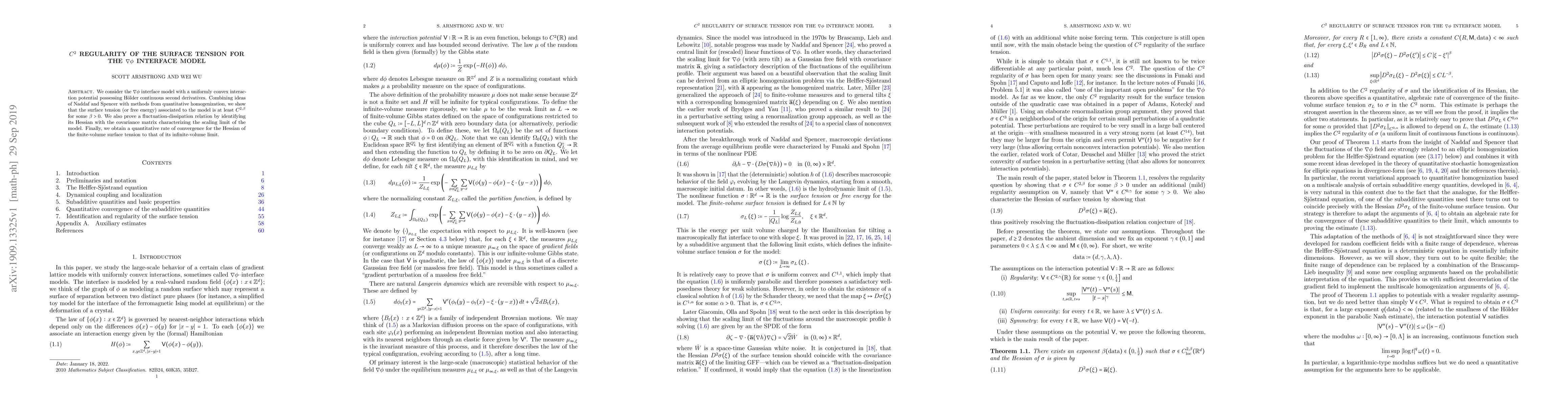 This paper establishes the $C^{2,eta}$ regularity of surface tension for a specific model with uniformly convex interaction potential, providing a fluctuation-dissipation relation and convergence rate.
