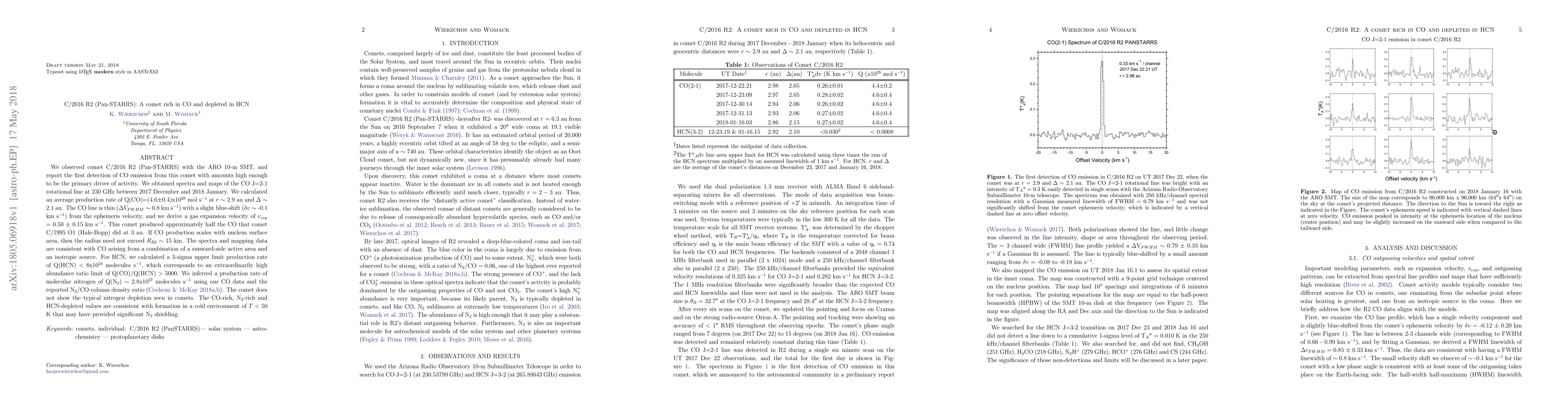 Comet C/2016 R2 (PANSTARRS) is rich in CO with a high production rate of 4.6x10^28 mol s^-1, and depleted in HCN, suggesting formation in a cold environment.