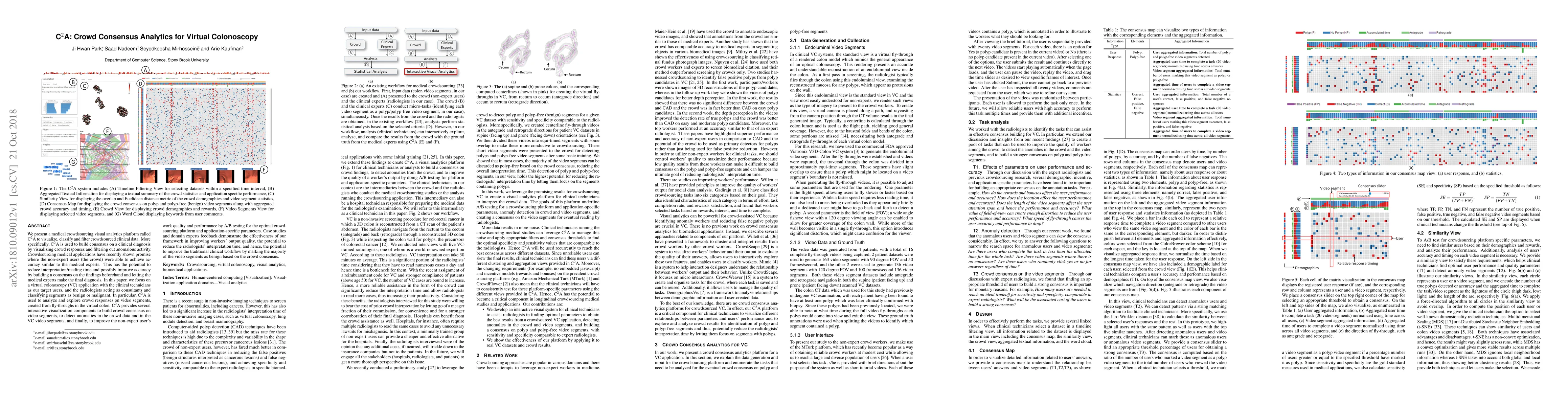 A crowdsourcing platform called C2A is used to analyze video segments from virtual colonoscopy and build consensus on diagnoses, improving accuracy and reducing radiologist interpretation time.