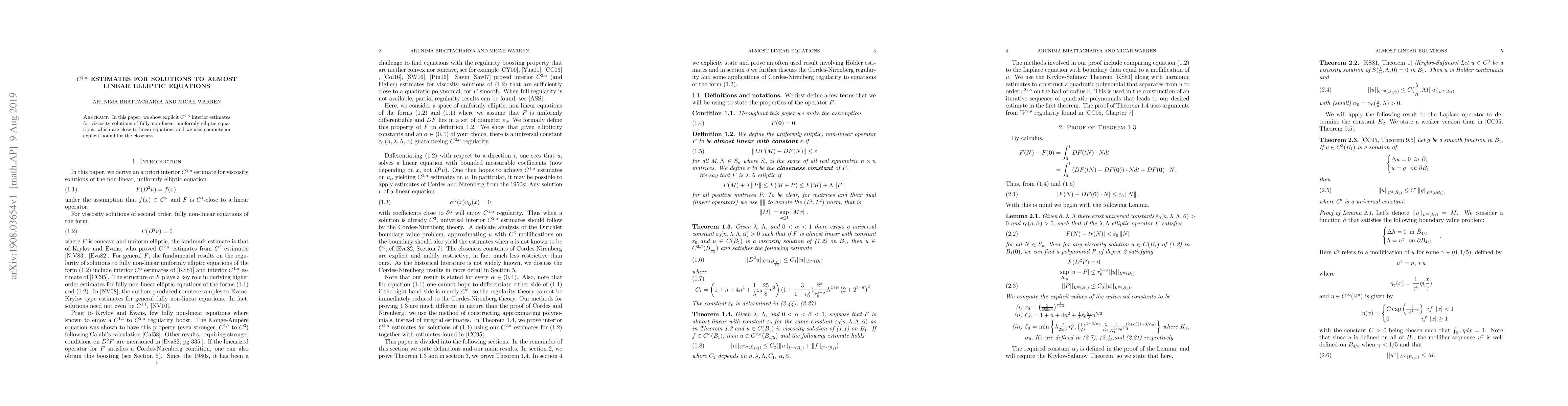 The paper provides $C^{2,eta}$ interior estimates for viscosity solutions of fully non-linear, uniformly elliptic equations that are close to linear equations.