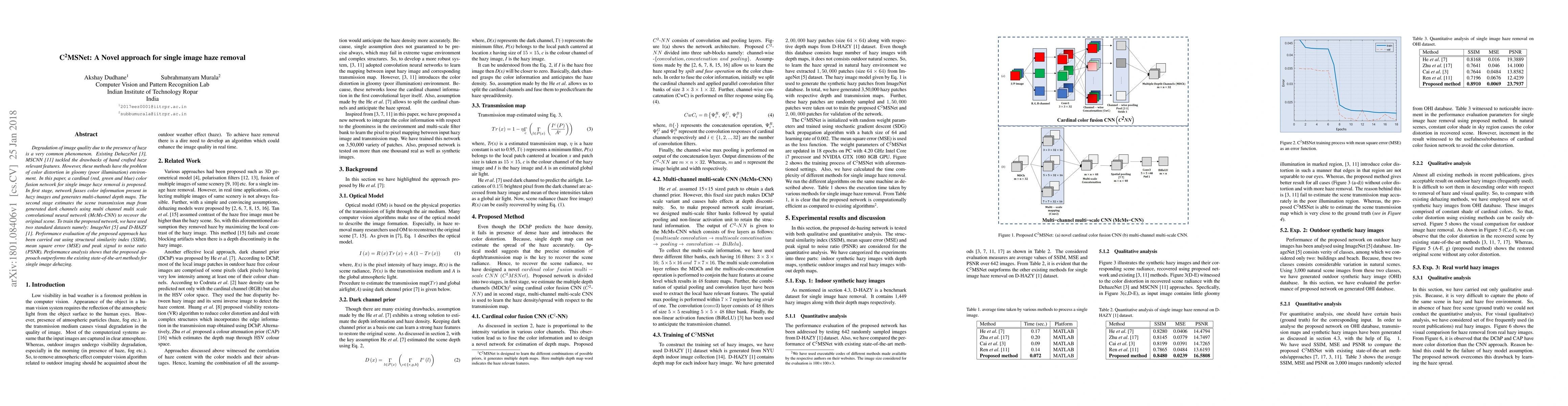This paper introduces C2MSNet, a novel network for single image haze removal that fuses cardinal color information to generate multi-channel depth maps. The proposed method uses a multi-channel multi-scale convolutional neural network to estimate the scene transmission map, outperforming existing methods in terms of structural similarity, mean square error, and peak signal to noise ratio.