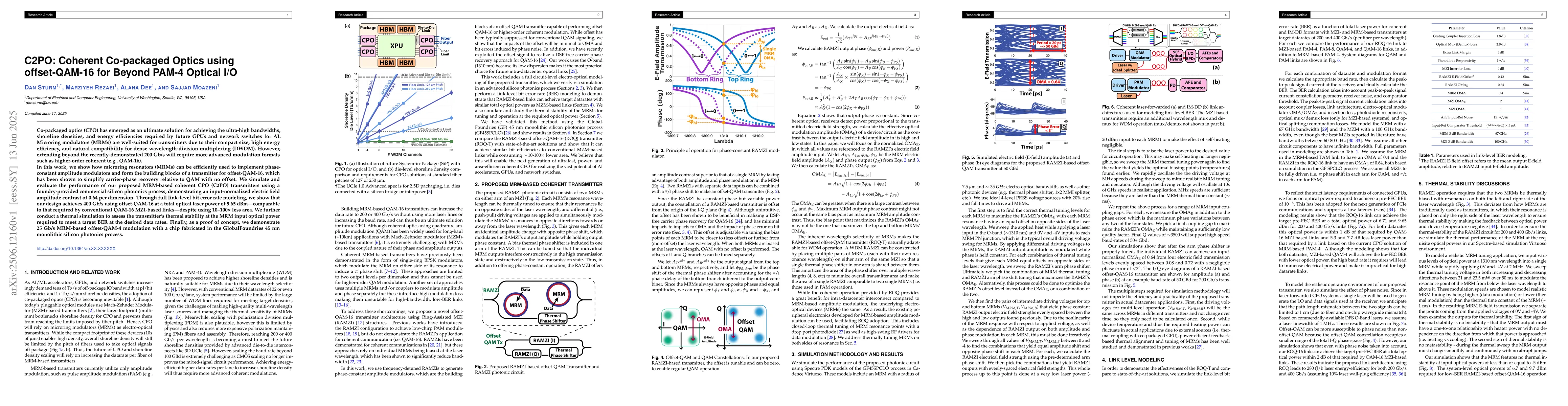 This work is novel as it proposes a compact and energy-efficient solution for CPO systems using RAMZIs and RAMZI-based offset-QAM transmitters, which can scale to meet the growing demands of GPUs, network switches, and datacenter interconnects with sustainable energy efficiencies.