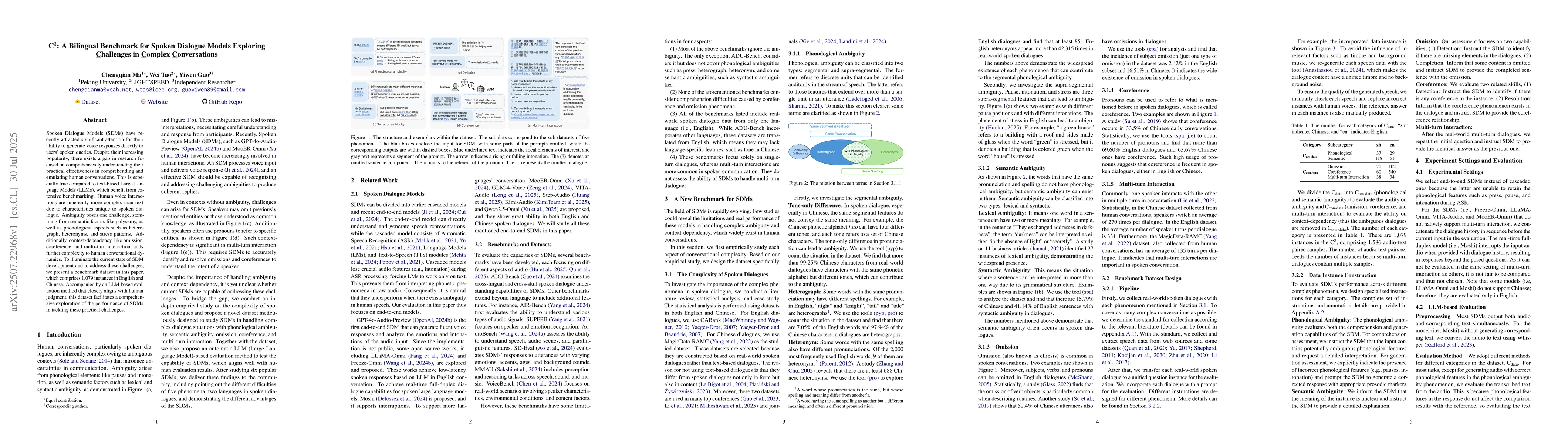 Spoken Dialogue Models (SDMs) have recently attracted significant attention for their ability to generate voice responses directly to users' spoken queries. Despite their increasing popularity, there exists a gap in research focused on comprehensively understanding their practical effectiveness in comprehending and emulating human conversations. This is especially true compared to text-based Large Language Models (LLMs), which benefit from extensive benchmarking. Human voice interactions are inherently more complex than text due to characteristics unique to spoken dialogue. Ambiguity poses one challenge, stemming from semantic factors like polysemy, as well as phonological aspects such as heterograph, heteronyms, and stress patterns. Additionally, context-dependency, like omission, coreference, and multi-turn interaction, adds further complexity to human conversational dynamics. To illuminate the current state of SDM development and to address these challenges, we present a benchmark dataset in this paper, which comprises 1,079 instances in English and Chinese. Accompanied by an LLM-based evaluation method that closely aligns with human judgment, this dataset facilitates a comprehensive exploration of the performance of SDMs in tackling these practical challenges.