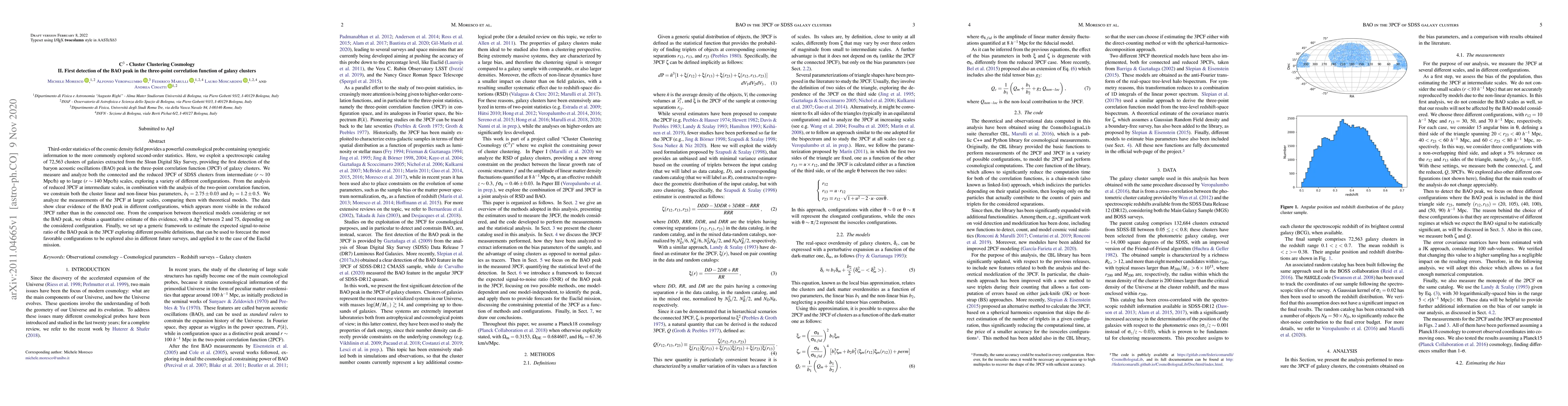 This paper reports the first detection of the baryon acoustic oscillations (BAO) peak in the three-point correlation function (3PCF) of galaxy clusters from the Sloan Digital Sky Survey, using a catalog of 72,563 clusters. The analysis reveals clear evidence of the BAO peak in the reduced 3PCF, providing constraints on cluster bias parameters and comparing the results with theoretical models.