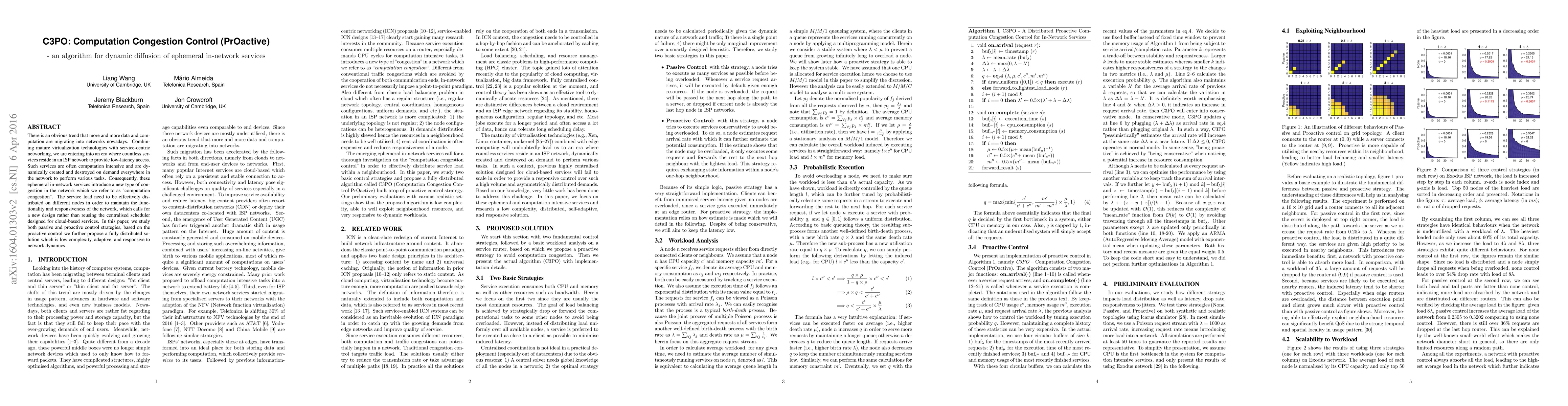 The paper introduces 'computation congestion' caused by dynamic, ephemeral in-network services in ISP networks. It proposes C3PO, a distributed algorithm for proactive control, which is low complexity, adaptive, and responsive to network dynamics, addressing the need for effective load distribution in this new congestion type.