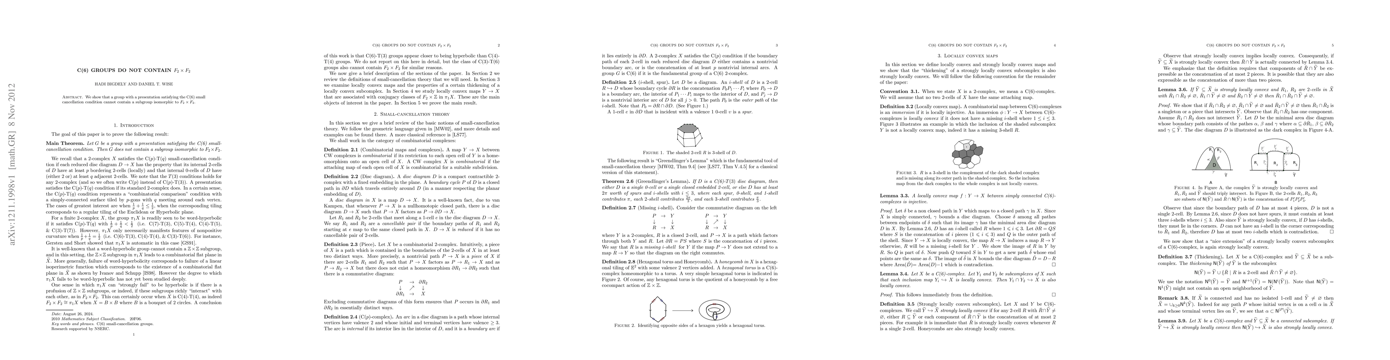 We show that a group with a presentation satisfying the C(6) small cancellation condition cannot contain a subgroup isomorphic to F_2 X F_2.