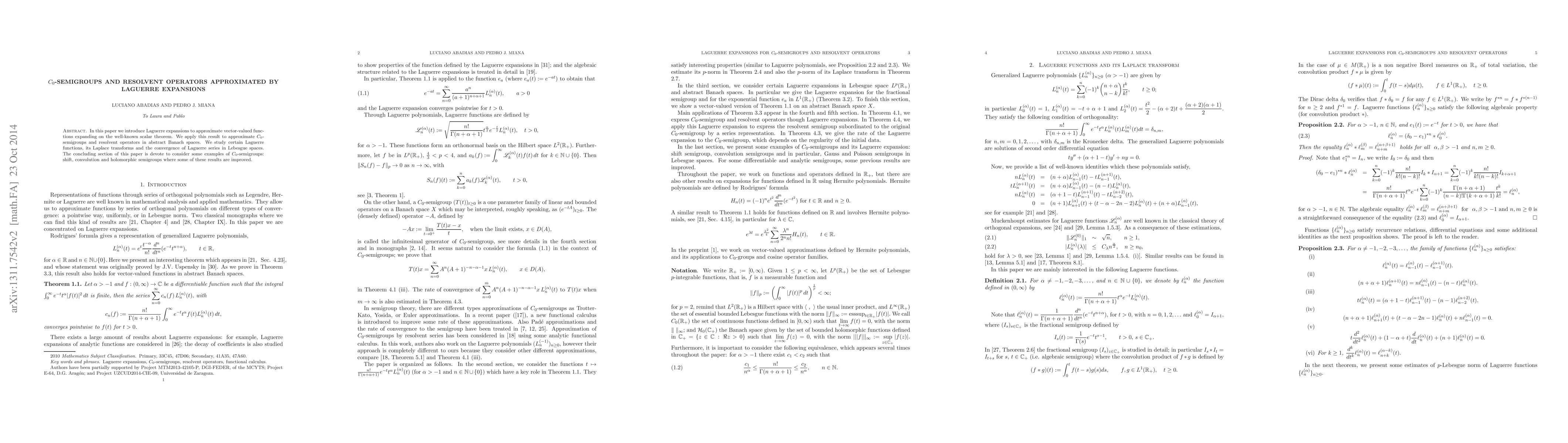 In this paper we introduce Laguerre expansions to approximate vector-valued functions expanding on the well-known scalar theorem. We apply this result to approximate $C_0$-semi\-groups and resolvent operators in abstract Banach spaces. We study certain Laguerre functions, its Laplace transforms and the convergence of Laguerre series in Lebesgue spaces. The concluding section of this paper is devote to consider some examples of $C_0$-semigroups: shift, convolution and holomorphic semigroups where some of these results are improved.