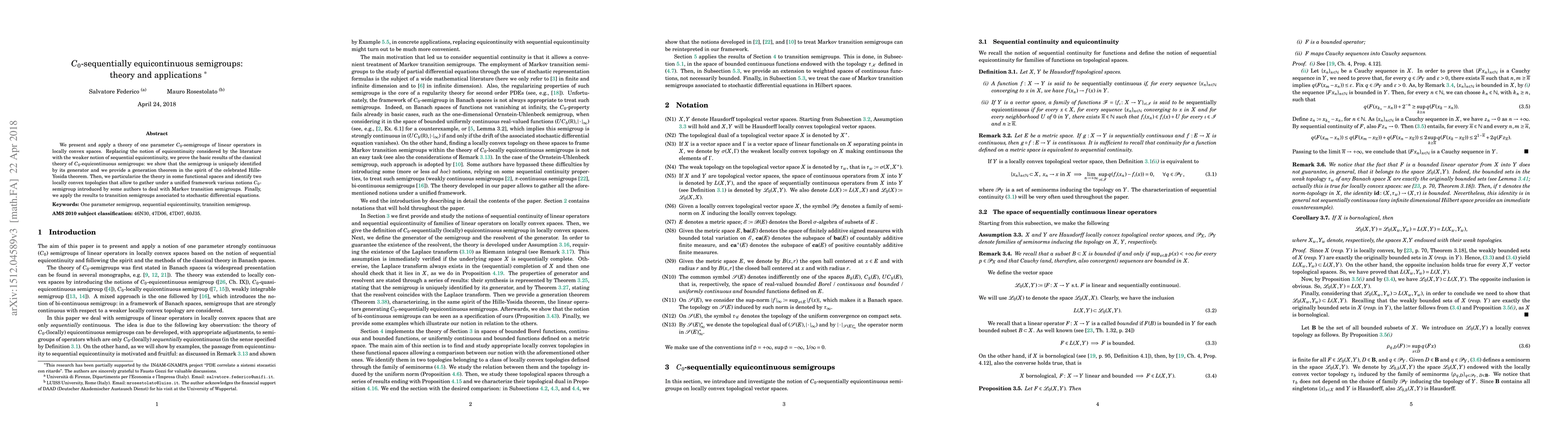 This paper develops a theory for one-parameter $C_0$-semigroups using sequential equicontinuity, proving their identification by their generator and presenting a generation theorem akin to the Hille-Yosida theorem. It applies the theory to transition semigroups in functional spaces, unifying various existing notions.