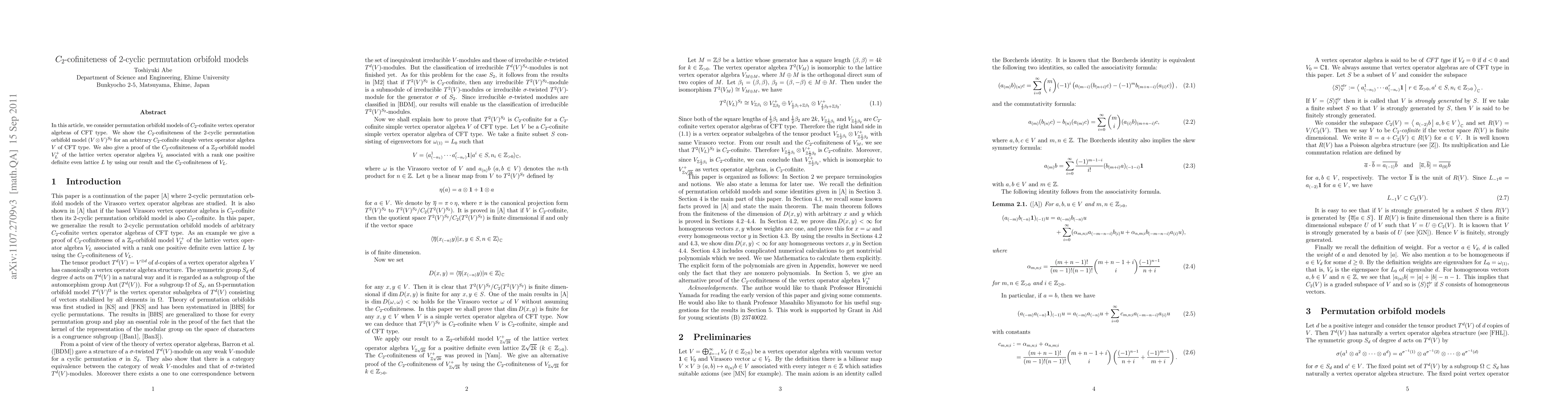 This paper demonstrates the $C_2$-cofiniteness of the 2-cyclic permutation orbifold model $(V\otimes V)^{S_2}$ for any $C_2$-cofinite simple vertex operator algebra $V$ in conformal field theory. Additionally, it proves the $C_2$-cofiniteness of the $\Z_2$-orbifold model $V_L^+$ for a rank one positive definite even lattice $L$.