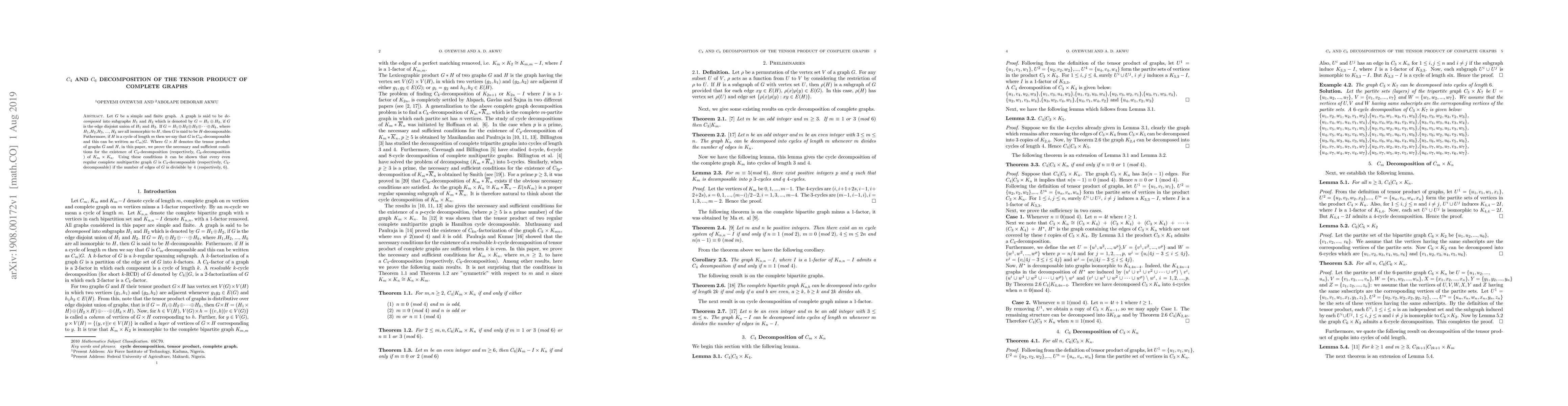 This paper investigates the decomposition of tensor products of complete graphs into smaller subgraphs, specifically $C_4$-decomposition for cycles of length 4 and $C_6$-decomposition for cycles of length 6.