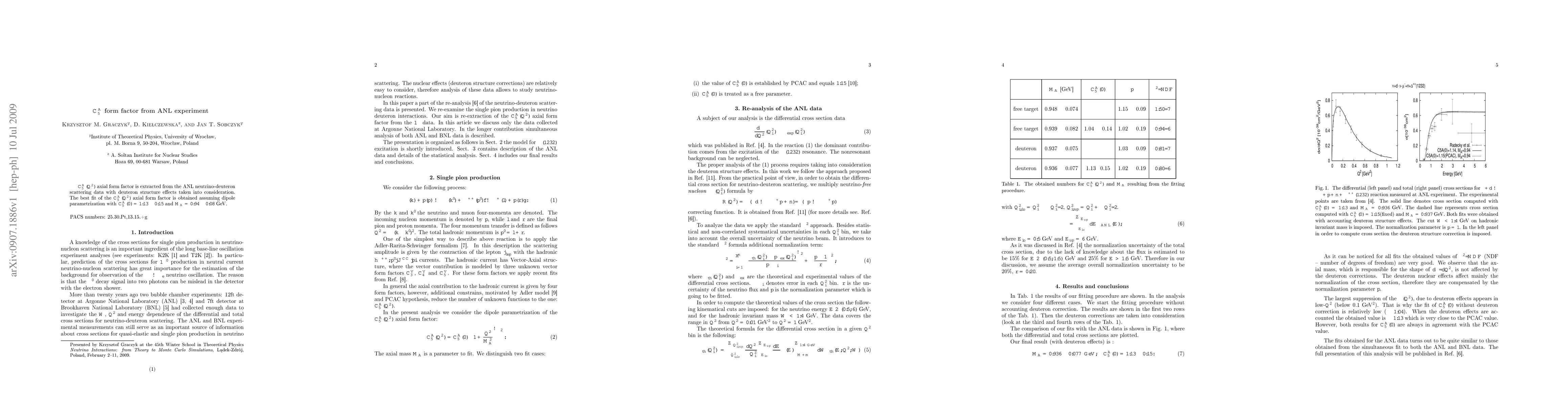 Researchers extracted the $C_5^A(Q^2)$ axial form factor from ANL neutrino-deuteron scattering data, finding a best fit with dipole parametrization resulting in $C_5^A(0)=1.13 ext{ and }M_A=0.94 ext{ GeV}$.