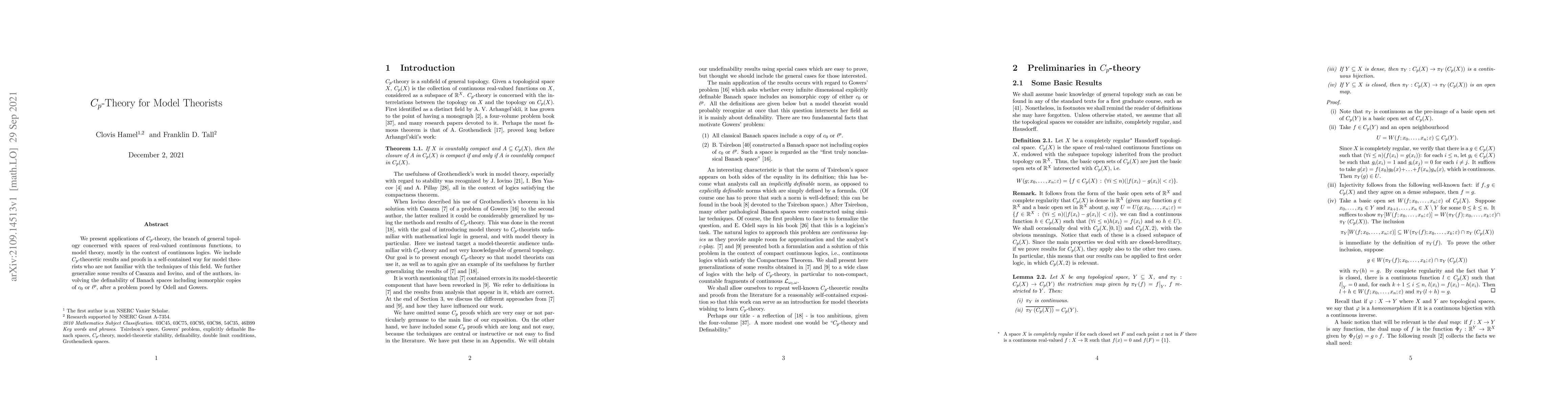 This paper applies $C_p$-theory to model theory, generalizing results on definability of Banach spaces and providing new insights for continuous logics. It offers a self-contained introduction to $C_p$-theoretic techniques for model theorists.
