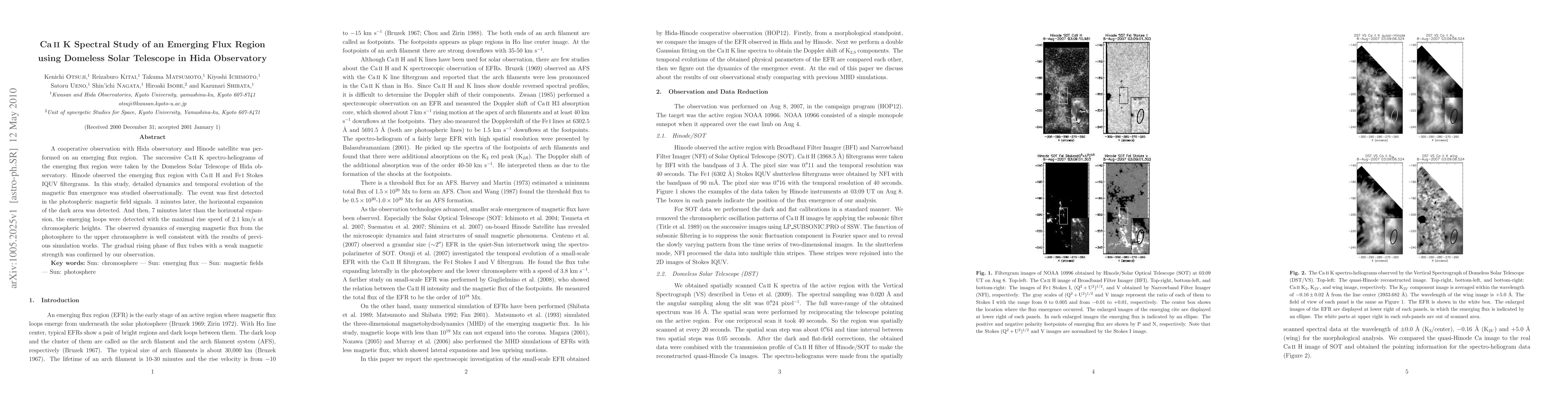 This study uses the Domeless Solar Telescope in Hida Observatory and Hinode satellite to observe the dynamics of an emerging flux region, capturing its photospheric magnetic field signals and subsequent chromospheric activity. The observed rise speed of emerging loops aligns with previous simulations, confirming the gradual emergence of magnetic flux.
