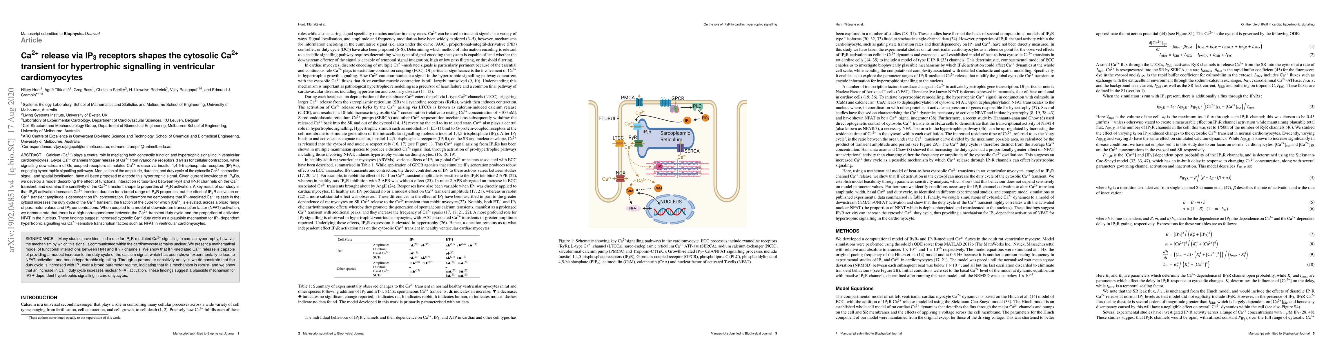 This paper investigates how Ca2+ release via IP3 receptors influences cytosolic Ca2+ transients and hypertrophic signalling in ventricular cardiomyocytes. The study finds that IP3R activation increases Ca2+ transient duration and duty cycle, suggesting a mechanism for IP3-dependent hypertrophic signalling through Ca2+-sensitive transcription factors like NFAT.